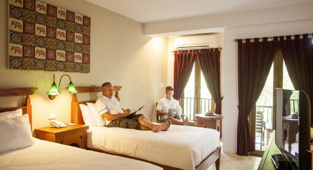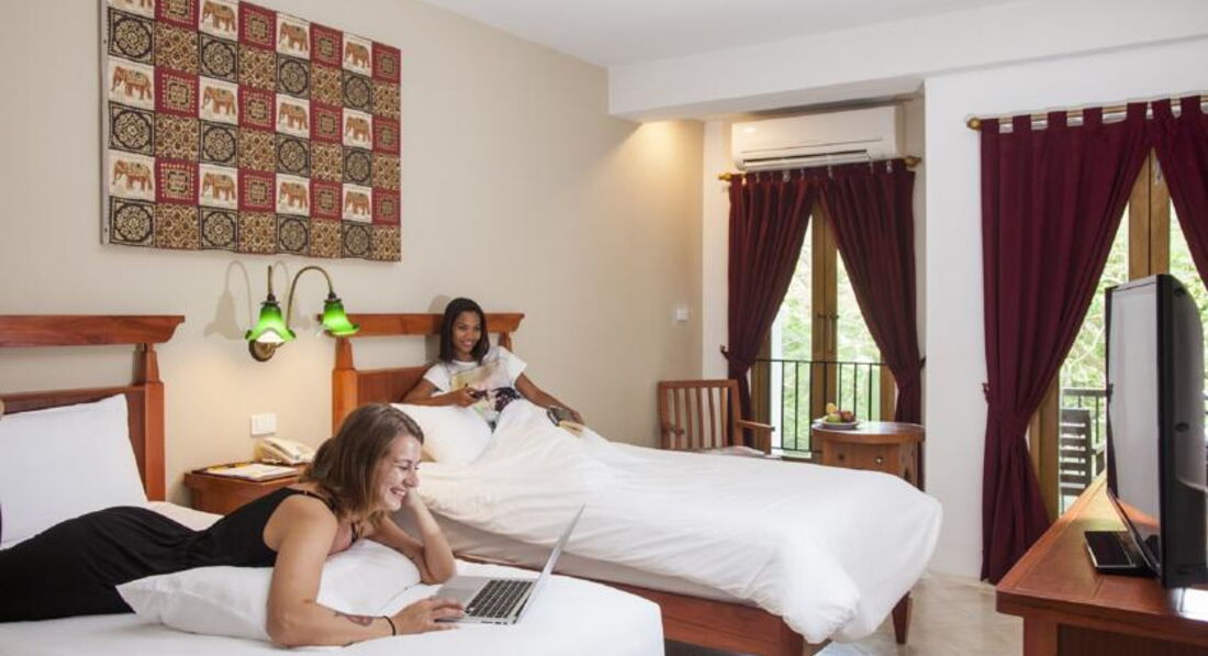 Отличный отельчик, тихий, спокойный, находится в минуте ходьбы от основной дороги, поэтому уличные шумы не беспокоят. Просторные номера, дружелюбный персонал, вкусный разнообразный завтрак, бассейн на втором этаже, есть что то типа спа, но никем не используется. бесплатный бильярд, интернет, внизу мини кинотеатр - берите с собой ДВД, договоритесь с персоналом - посмотрите кино на русском :)