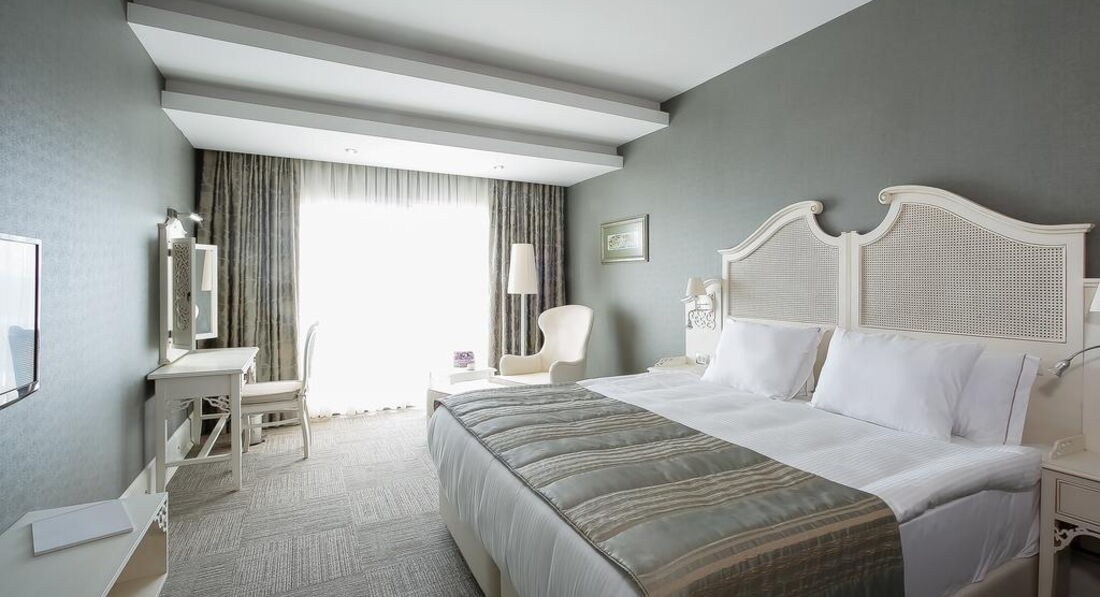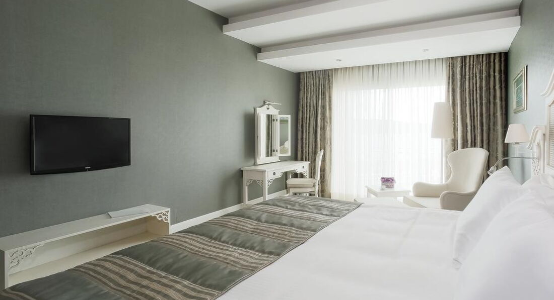 Типи номерів: Standart (з видом на море чи сад) Economy (без балкону). Площа номера – 28 кв.м. Максимальне розміщення – 3 особи (2 дорослих + 1 дитина).У номері: • Wi-Fi • Балкон (крім номерів Economy) • Меню подушок • Кондиціонер • Сейф • 2-спальне ліжко або 2 односпальні • Набір для приготування чаю та кави • Міні-бар • Письмовий стіл, журнальний стіл, трюмо • ТБ (55'Led TV) • Мармурова ванна кімната • Фен • Халат, тапочки, банне приладдя
