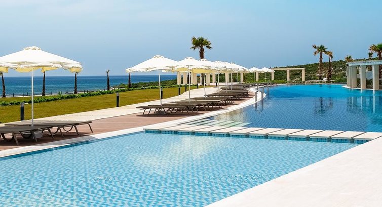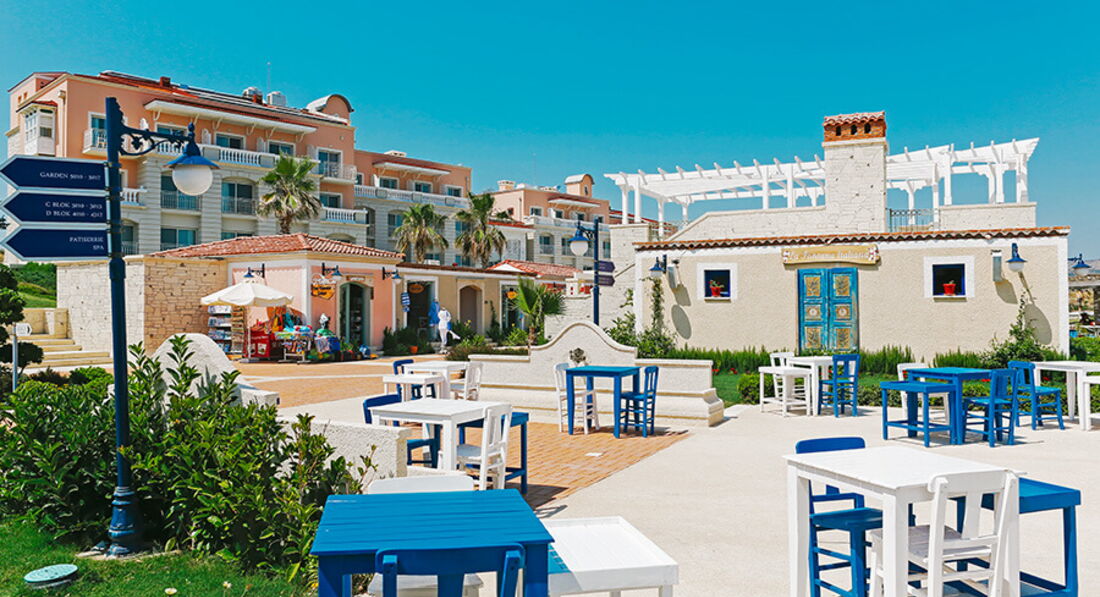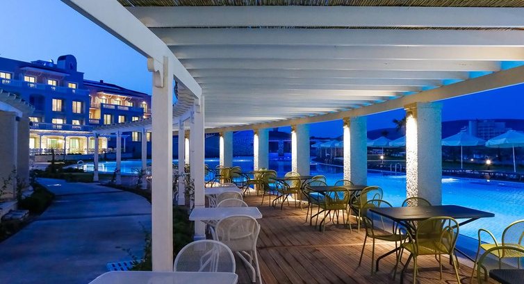 Територія та послуги: • Басейни (відкритий, критий, працюють за сезонами) • Пральня • Магазини Розваги та спорт: • Дискотека • Клуб Beach by Alkoçlar • Розважальні шоу • Діджей-сети • Водні види спорту • Вітрильний спорт • СПА та оздоровчий центр • Масаж • Турецька лазня • Парова лазня • Тренажерний зал • Салон краси • Заняття йогою, пілатесом, гімнастикою (за запитом) • Настільний теніс • Дартс • Пляжний волейбол Для дітей: • Басейн • Дитяча анімація • Дискотека • Шоу-програма, конкурси, тематичні дні • Міні-клуб (3-6 років) • Міді-клуб (7-12 років) Живлення: Ультра все включено з 7.00 до 1.00, місцеві алкогольні напої, гарячі та прохолодні безалкогольні напої, коктейлі. Безкоштовне відвідування ресторанів а ля карт – 2 рази на тиждень (1 раз на 3 дні). Ресторани та бари: Agrilla Restaurant, ресторан Meyhane A'la Carte, Mandolin A'la carte restaurant (рибний), лобі-бар з терасою, лаунж-бар, бар біля басейну. Пляж: Власний піщано-гальковий пляж обладнаний понтонами для зручного заходу в море.
