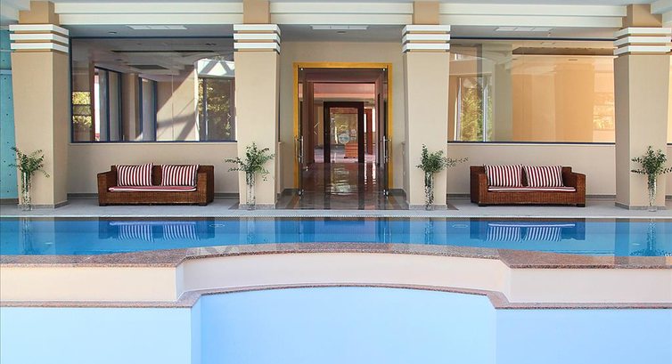 Територія та послуги: Автостоянка Інтернет куточок, безкоштовний Wi-Fi доступ до Інтернету на території готелю та в деяких номерах. Конференц-зал - 4 конференц-зали на 1180 місць Сейф у номері Бар - центральний бар та бар біля басейну Ресторан Розміщення з тваринами до 5 кг - у певних типах номерів, за запитом. Умови для інвалідів - номери з ванними кімнатами, пандуси. Розваги та спорт: Басейн - 2 басейни з прісною водою Басейн з підігрівом Критий басейн, що підігрівається (18х5) в спа Джакузі Настільний теніс Більярд Спа Evexia Spa center Критий басейн, що підігрівається (18х5), джакузі (на 6 місць), турецька лазня (хамам), 2 сауни, зона відпочинку, тренажерний зал, аромотерапія, спа-бутік, комплекс процедур з догляду за обличчям і тілом, спа-джет , перукарня, 5 процедурних кабінетів, масаж та ін. Тренажерний зал Турецька лазня Масаж Перукарня Сауна Для дітей: Дитячий майданчик Дитячий басейн із прісною водою Няня: нагляд за дітьми - на запит Живлення: Сніданок, обід, вечеря (FB), Сніданок, вечеря (HB) Пляж: Гальковий у 80 м, дрібна галька Парасольки безкоштовно Лежаки безкоштовно Пляжні рушники безкоштовно До оплати приймаються кредитні картки: Visa, MasterCard, Diners, Amex.