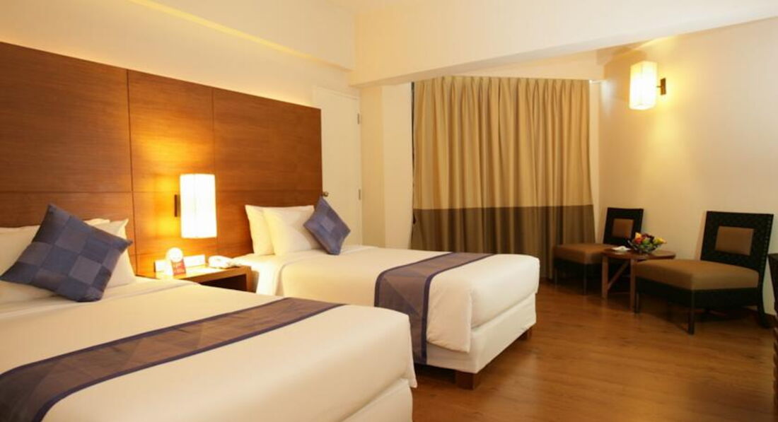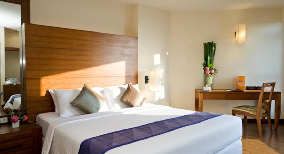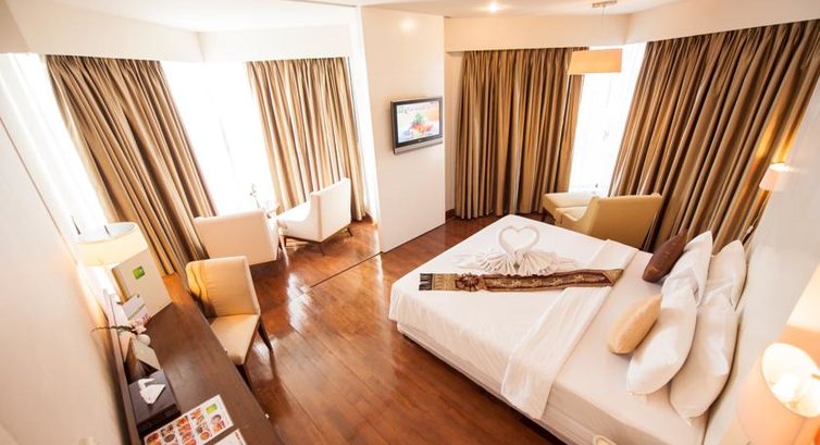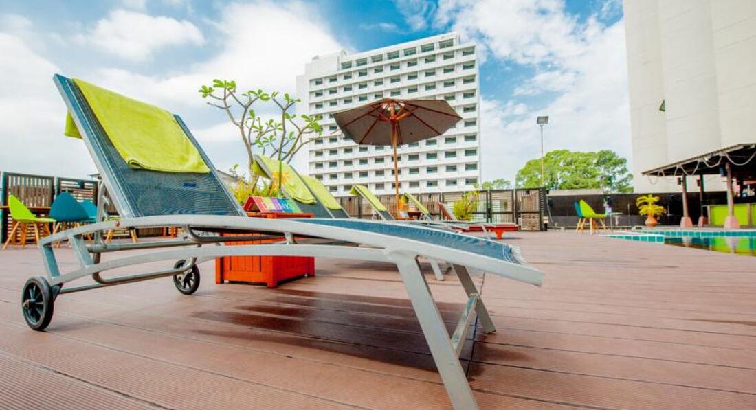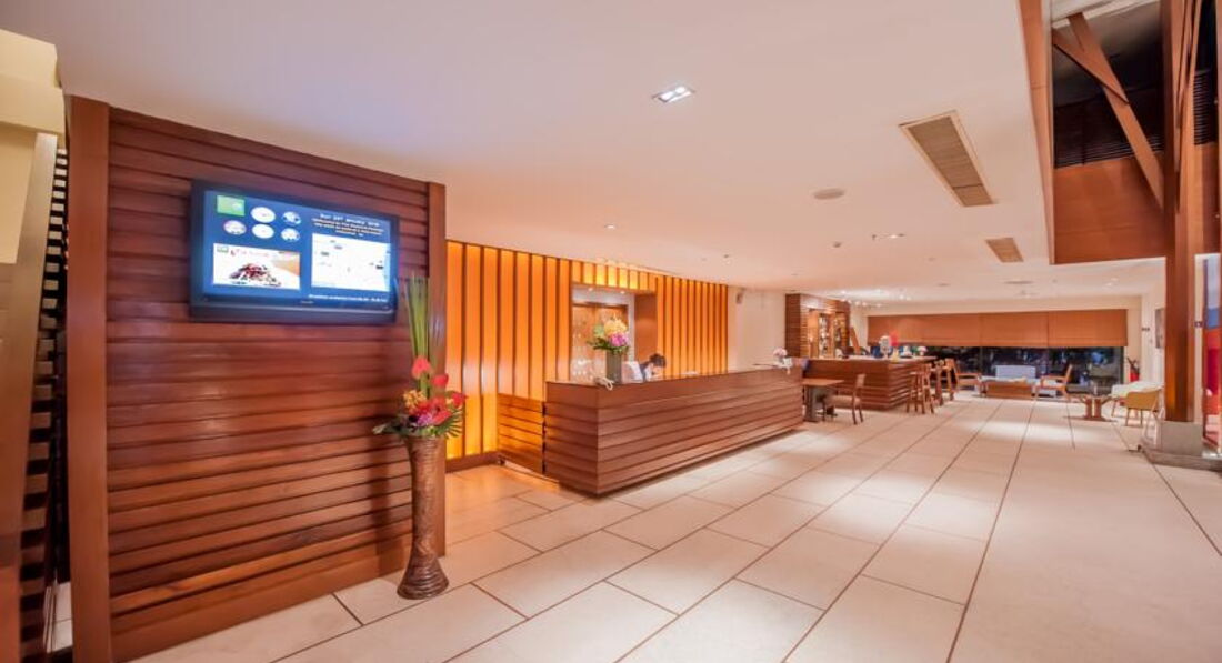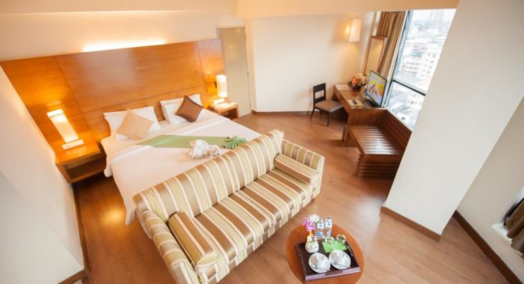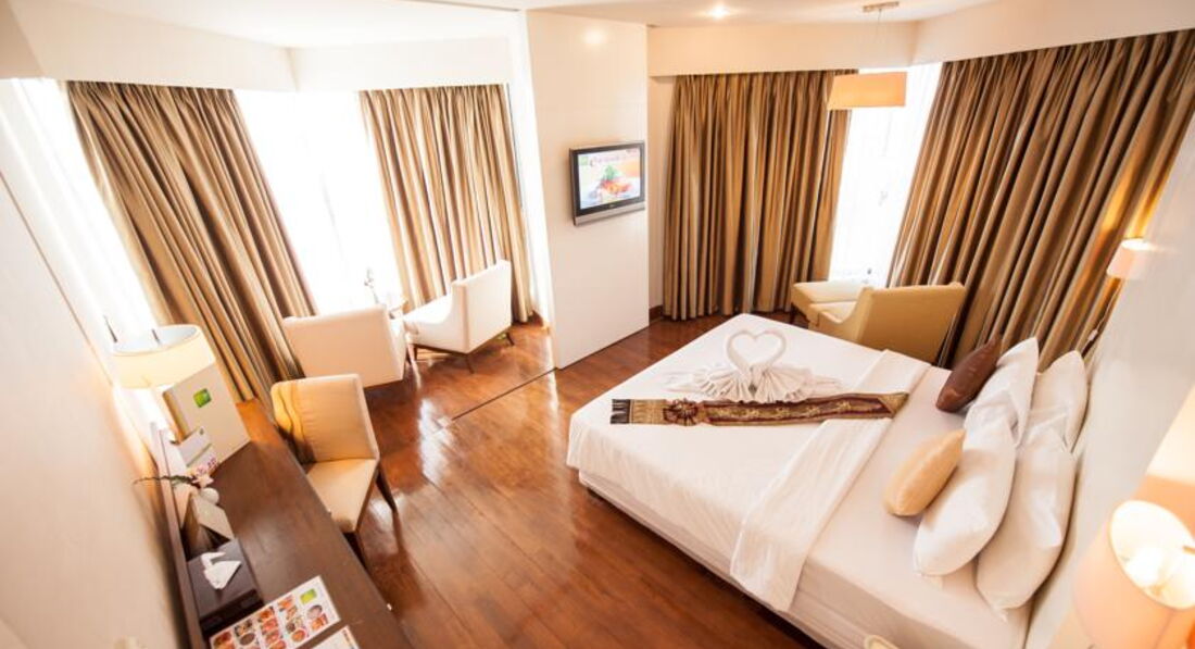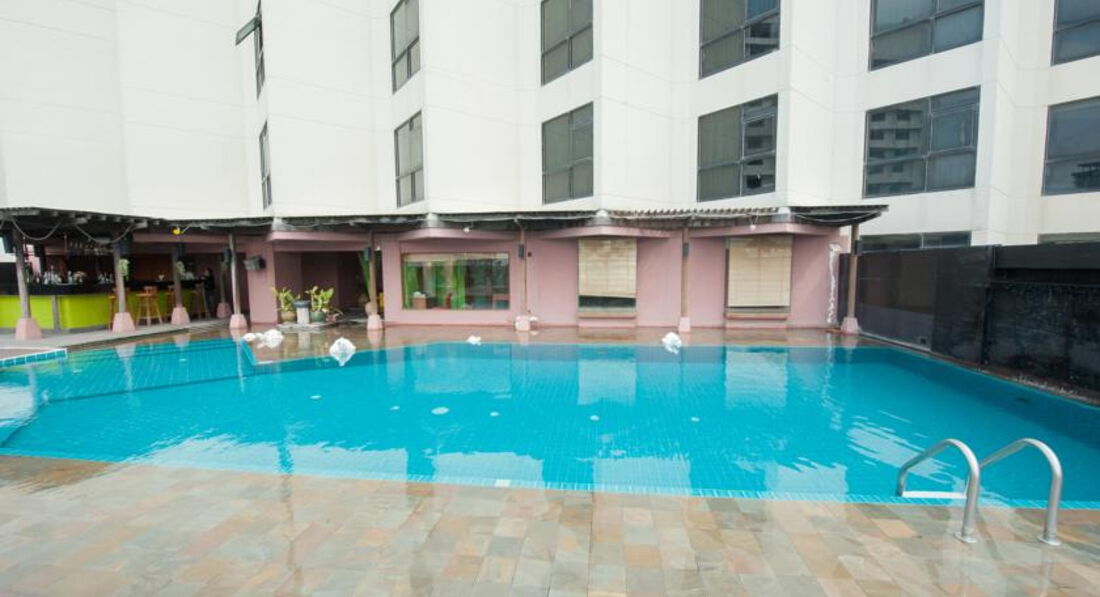 Отдыхали в отеле с 17-30 марта 2014 года. Приехали из аэропорта часам к 10 дня, не смотря на то, что заселение начинается с 14:00, часов в 12 нам уже выдали ключи. Это очень обрадовало, так как валились с ног от усталости. Персонал доброжелательный, хорошо понимает английский. При въезде попросили 1000 бат в залог как депозит. При выезде вернули, без всяких проблем. Поселили на 10 этаже с видом на город и на местный бассейн, который расположен на уровне третьего этажа над входом в отель. Все в отеле 18 этажей. На этаже было тихо, соседние номера пустовали, так что индусы, которых очень много в отеле, не тревожили. Лифта 2, всегда быстро приходил. На второй день впечатление об отеле испортили ТАРАКАНЫ. Видно, что их пытаются травить, т.к. иногда находили мертвые тушки, но видимо безуспешно. В номере класса delux был кондиционер, холодильник, фен, мини-бар, телевизор, даже были русские каналы, но показывал он очень плохо - сильно рябил, так что его не включали. К сожалению не было сейфа. Можно бесплатно арендовать сейфовую ячейку на ресепшн (утеря ключа - 2000 бат). В отеле есть вай-фай, платный на этажах (порядка 700 бат за неделю) и бесплатный на ресепшн (пароль можно попросить у них же). Пользовались бесплатным вай-фаем, скорость хорошая. Бассейн чистый, красиво украшен, работает до 19:00, полотенца можно получить у бара рядом с бассейном, лежаки двух видов: деревянные с мягкой подстилкой и металлические с сетчатой обивкой. Аренда лежаков и полотенец бесплатна. Удобное расположение отеля, всего два квартала и вы уже на пляже, центр не далеко, рядом обменник с хорошими курсами. В нем так же можно сразу обменять рубли на баты, курс 1 х 0,860. За один доллар давали 37.20 бат. Курс каждый день менялся, в других обменниках можно было найти выгоднее.