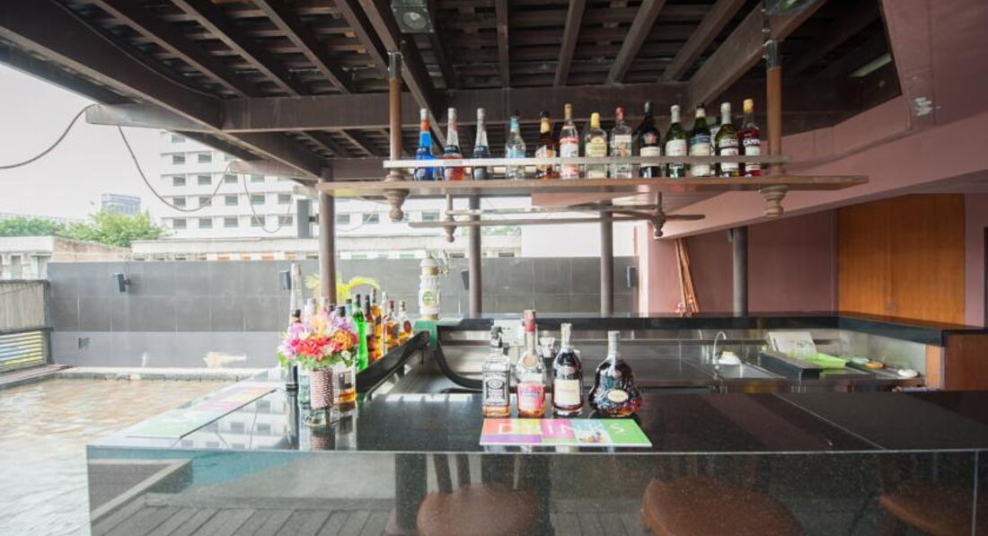 Территории отеля нет ни какой , бассейн находиться на 3 ем этаже . приносить что то с улицы туда нельзя . нужно только у них покупать , вот вам для сравнения цена , бутылка пива в севен элеван стоит 53 бата , этаже бутылку в их нем баре при бассейне стоит 200 бат .