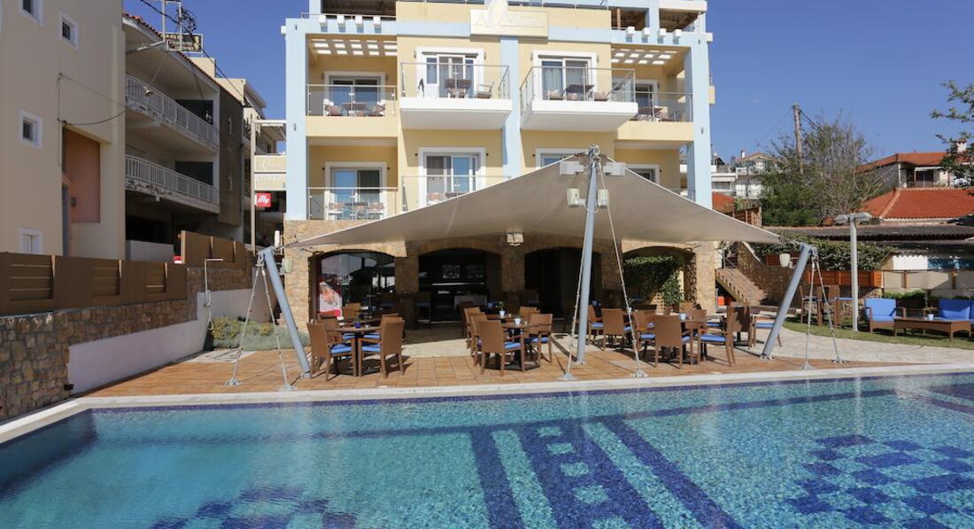 Готель розташований поруч із піщаним пляжем Аркуді. Чудове місце розташування готелю дозволяє насолоджуватися видами моря. Саме ця унікальна особливість цього готелю відрізняє його від інших. Тут Вам надається можливість поєднатися з природою, оглядати чарівний краєвид гір та багатих лісів. Новий готель відкрився в червні 2011 року. Одна чотириповерхова будівля з ліфтом.