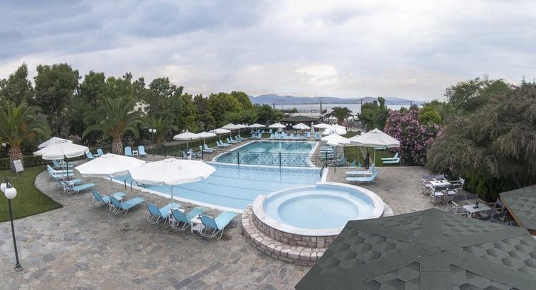 Широка зелена територія, що виходить до моря, басейни, інтернет, вибір номерів, таверна біля моря, бар, спокійна атмосфера.
