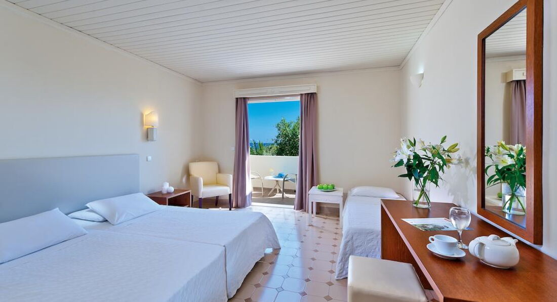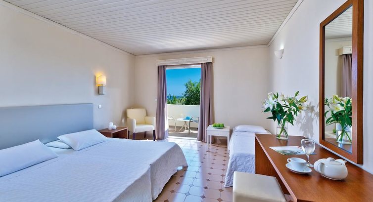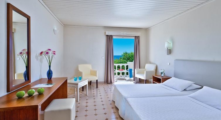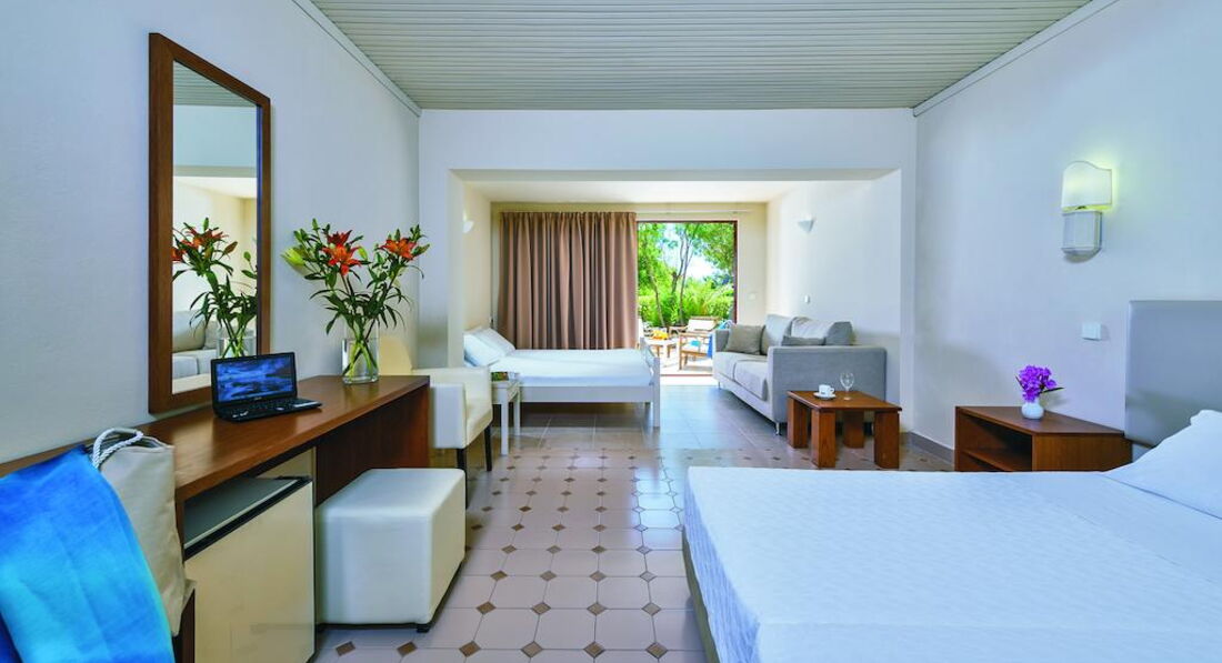 Типи номерів: Standard Room (24 м2, вид на сад або прямий/частковий на море, макс. 3 чол., Одна спальня та ванна, балкон/тераса у всіх номерах) Family Room (макс. 4 чол., вид на сад, 2 спальні, розділені міжкімнатними дверима, вітальня, ванна, тераса/балкон у всіх номерах) Superior Apartment (110 м2, макс. 4 чол., вид на сад, 2 спальні, розділені міжкімнатними дверима, вітальня з кухонним куточком, тераса)У номері: • душ або ванна • туалетне приладдя • фен • центральний кондиціонер (безкоштовно) • супутникове ТВ • прямий телефон • міні-холодильник (безкоштовно) • стіл і стільці • wi-fi (платно) • сейф (2,5 євро на день)
