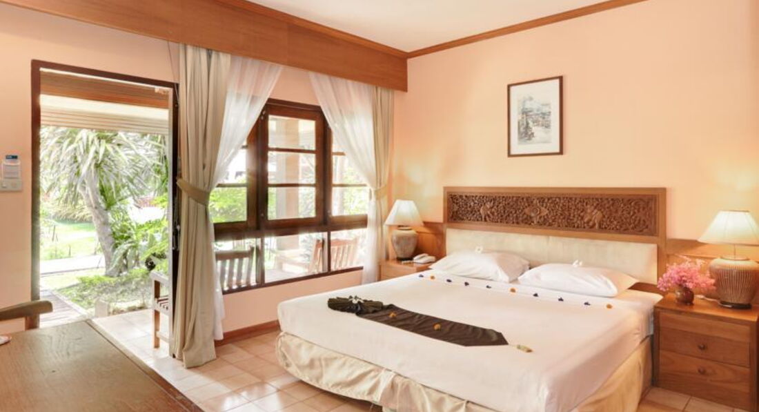 Мы были в этом отеле в свадебном путешествии в сентябре 2012 года. Изначально бронировали бунгало. Но при въезде в бунгало нам бросились в глаза рыжие муравьишки и стройка за окном. Попросили переселить нас в другой номер, т.к. остальные бунгало были заняты. Нам дали номер на первом этаже с террасой и собственным выходом к бассейну.