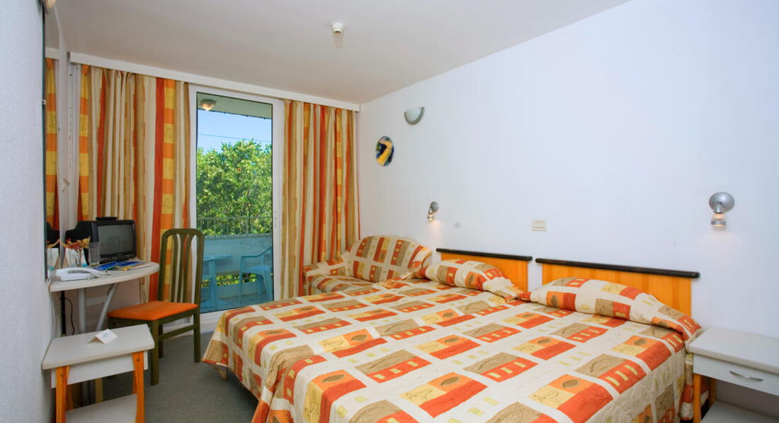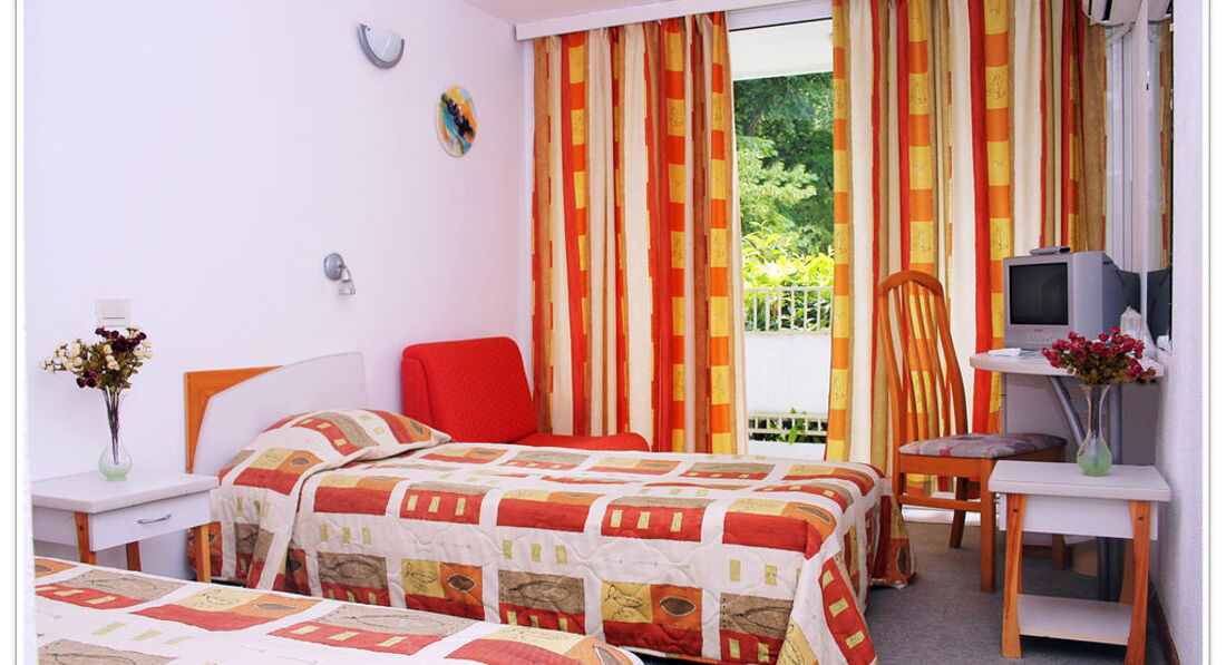 • супутникове TV • телефон • кондиціонер • холодильник (за додаткову плату) • санвузол з душем • балкон • прибирання номеру • зміна постелі та рушників Територія та послуги: Безкоштовні послуги: • Ресепшн 24г. • відкритий басейн, дитячий басейн • основний ресторан з терасою, лобі-бар, снек-бар • Wi-Fi Інтернет у фойє, біля басейну та на пляжі • поштові послуги • дитячий майданчик у сусідньому готелі Послуги за додаткову оплату: • таксі • масаж • хімчистка • пляжні рушники • міні-бар • прокат велосипедів • інтернет куточок, копіювальні послуги • розміщення з домашніми тваринами • сейфи в оренду Розваги та спорт: • водні види спорту, дайвінг • міні гольф • верхова їзда • більярд • велосипеди та велорикші • прогулянка фаетонами • луна Парк • анімація: 6 днів на тиждень спортивна та розважальна анімаційна програма для дітей та дорослих, вечірні шоу програми, а для дітей – міні диско Для дітей: • дитяче ліжечко (за дод. плату) • дитячий стільчик для годування • міні-клуб • дитячий майданчик у сусідньому готелі. • дитячий басейн • міні диско, в готелі. Живлення: ALL INCLUSIVE Пляж: 3-кілометрова пляжна смуга Албени в 900 м від готелю, безкоштовно 1 переносна парасолька До оплати приймаються кредитні картки: Master Card, Visa, American Express, JCB.