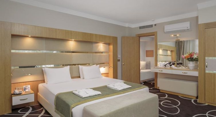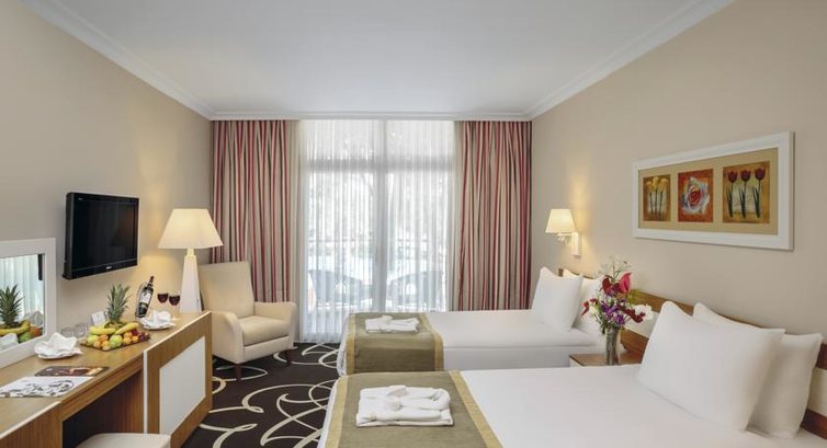 Доброго всем времени суток! Много раз была в Турции, но пиши впервые. Данный отель я выбрала уже давно, когда он был у другого хозяина и под другим названием. Он мне сразу понравился и я решила обязательно там побывать. В итоге посещала его уже дважды с Библиоглобус в 2016 году и с Пегас в 2017 году. Хочу сразу сказать, что с Пегас гораздо лучше - гид по имени Саид выше всяких похвал, я даже до конца его выступления просидела))) На мой взгляд отель замечательный- там каждый может (если конечно хочет) найти себе то, что ему необходимо. Территория огромная - есть и тихая сторона с бассейном 15+, все анимационные программы были у бассейна или на пляже. Аниматоры не навязчивые, так что никто к вам лишний раз не пристает. Еда на мой взгляд бесподобная и её просто полно, кормят целые сутки)))Наливают тоже) - правда у меня есть впечатление, что алкоголь в разных бутылках, но из одной емкости и ...прям скажем разбавленный. Вино кстати в этом году гораздо лучше, чем в прошлом. Номер нормальный, убирали каждый день, минибар пополнялся исправно. У нас был номер 4332, там убиралась замечательная женщина - спасибо ей персональное. Каждый день проходили вечерние шоу, очень и очень интересные. Единственно, что лично нам не понравилось - это диджей, слишком много клубной музыки, такое впечатление что он не смотрит или не хочет смотреть под какую музыку танцуют отдыхающие.Кстати репертуар очень примитивный. В сентябре прошлого годы музыка была лучше. Прошу на это обратить внимание отеля, все таки это настроение, а оно должно быть соответствующим. Вай фай конечно тоже не справлялся с таким наплывом посетителей. И еще одно но очень большое пожелание - организовать бильярд, я думаю отель может найти для этого место.Но это все детали и пожелания, отдых у нас удался и большое спасибо всем сотрудникам отеля!!!!!