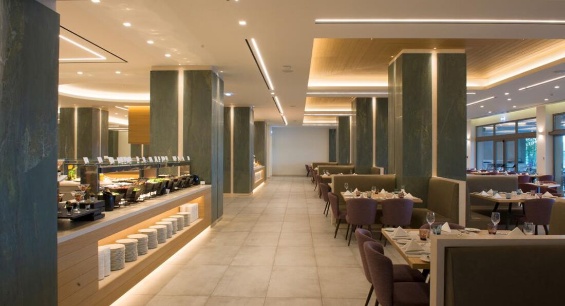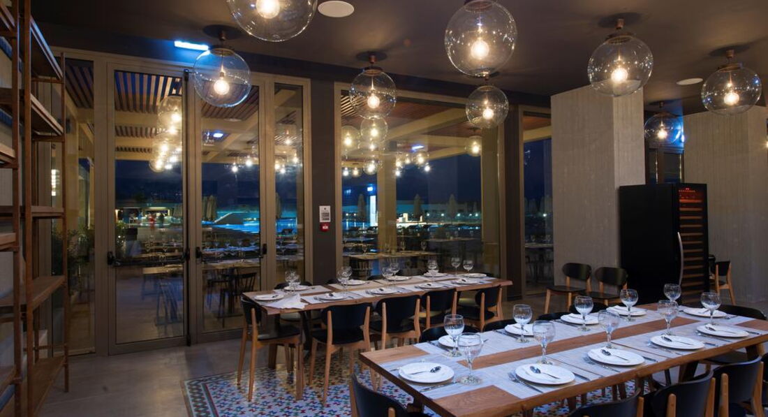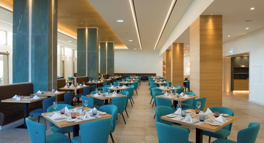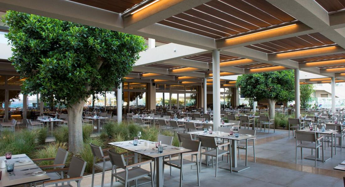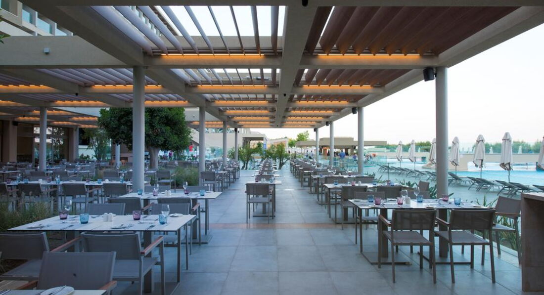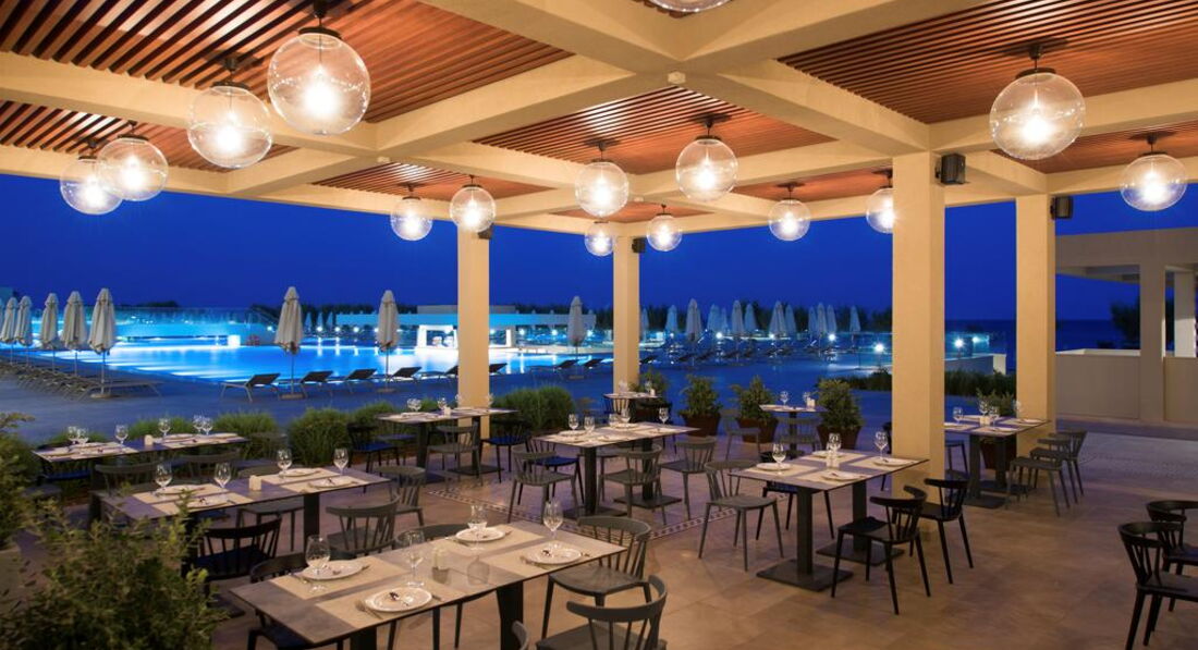 Територія та послуги: хімчистка бари: 4 кімната для багажу магазин ресторани: 2 пральня ресторани a la carte: 3 (азіатська, італійська, грецька таверна) лікар за викликом басейни: 2 паркування є Wi-Fi безкоштовно послуги портьє обмін валюти аквапарк біля басейну парасольки, шезлонги: безкоштовно Розваги та спорт: волейбол на пляжі безкоштовно аквапарк безкоштовно ((6 водних гірок) з кількома зонами, критими майданчиками для відпочинку, ряд роздільних ділянок з водними гірками та забавами для малюків, старших дітей, підлітків та дорослих) анімація тенісний корт безкоштовно (2) тематичні вечори Для дітей: дитячі басейни: 1 дитяче меню у ресторані дитячий майданчик (1 – критий з килимовим покриттям, 1 – просто неба, обгороджений, покриття – пісок) послуги няні: за запитом, платно дитячий аквапарк дитяче ліжечко: за запитом дитячі стільці в ресторані: єДитячий клуб А: спеціальна ясельна група під проводом кваліфікованих вихователів. Спеціальне приміщення для денного сну. Для дітей віком від 6 місяців до 4 років