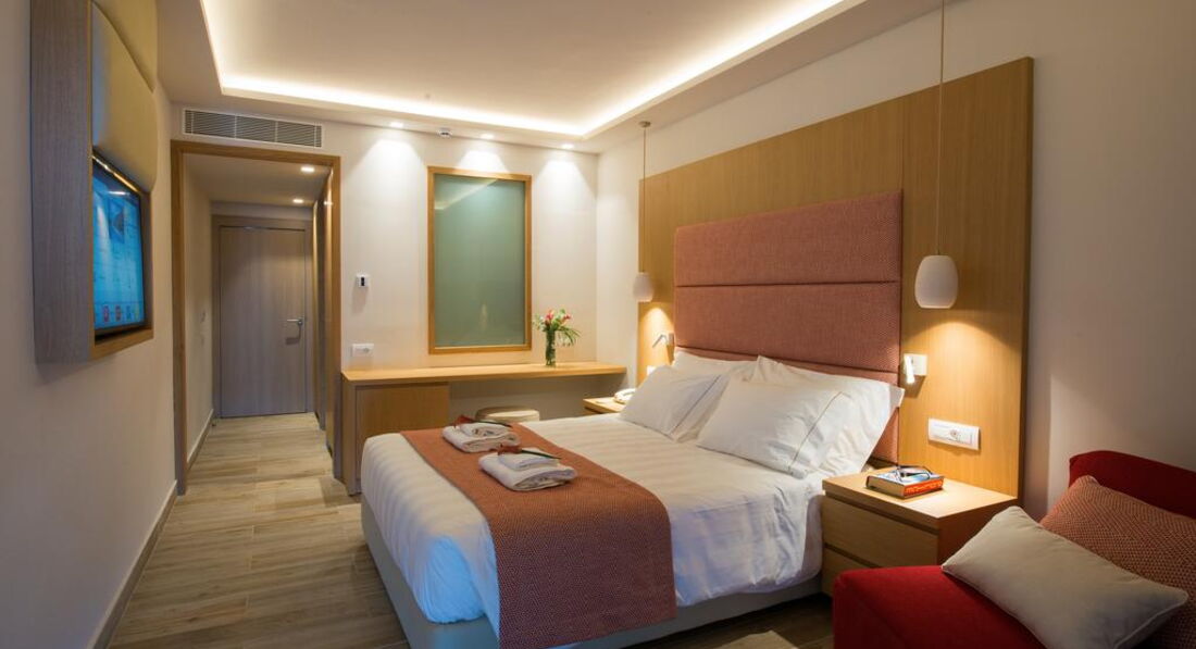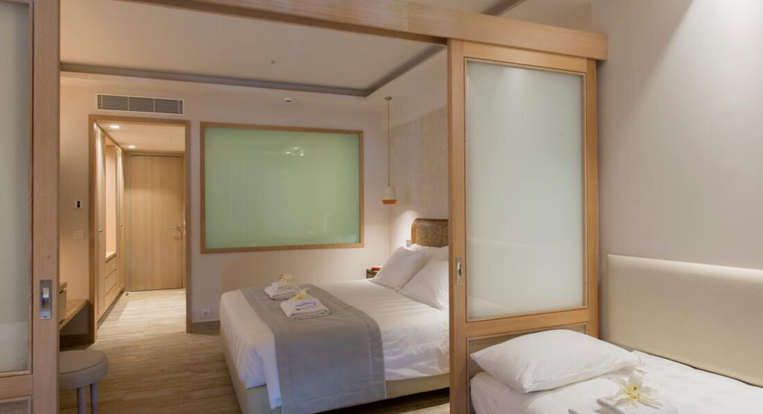 Типи номерів: standard room SV/MV (вид на море, вид на море або вид на гори, осн. ліжко – двоспальне, дод. – розкладне крісло, макс. 3 чол., 23-24 кв.м); family studio SV (вид на море, двокімнатний номер з розсувними дверима, осн. ліжко – двоспальне, дод. – 2 софи, макс. 4 чол., 35 кв.м); junior suite front SV (вид на море, однокімнатний номер, осн. ліжко – двоспальне, дод. – софа, макс. 3 чол., 30 кв.м); 2-bedroom suite outdoor jacuzzi SV (вид на море, двокімнатний номер, осн. ліжко – двоспальне, дод. – 2 софи, джакузі на терасі, макс. 4 чол., 47 кв.м); suite 2 rooms SV (вид на море, двокімнатний номер, спальня та довжина вітальня з розсувними дверима, осн. ліжко – двоспальне, дод. – 2 софи, макс. 4 чол., 60 кв.м).У готелі є номери для людей з обмеженими можливостями.
