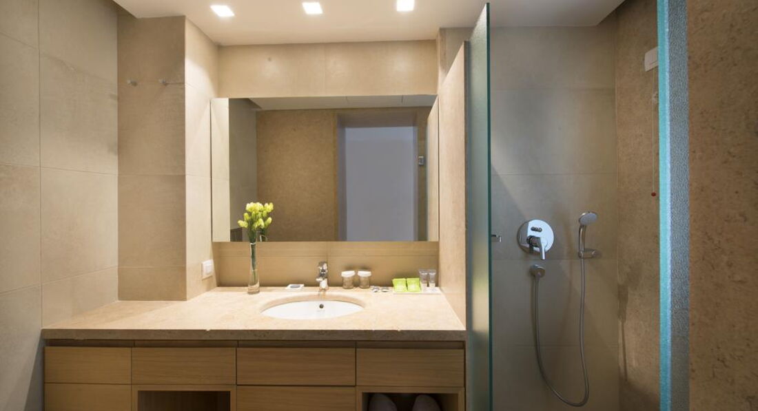 У номері: сейф: у номері, безкоштовно ванна та душ набір для приготування чаю/кави зміна білизни: щодня room service: платно кондиціонер: центральний зміна рушників: щодня прибирання номера: щоденно телефон підлога: керамічна плитка капці балкон або тераса фен: є вибір подушок ТБ: супутникове халат міні холодильник