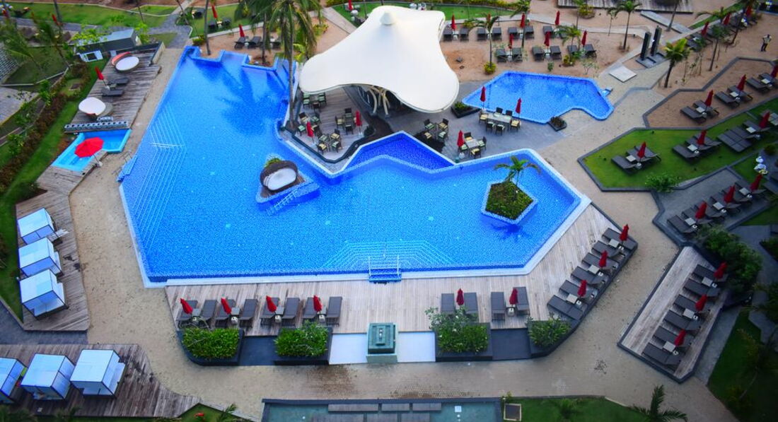 Територія та послуги: • відкритий басейн (06:00-20:00) • основний ресторан (міжнародна та азіатська кухня, сніданки, обіди та вечері) • ресторан на пляжі Shoreline (11:00-19:00) • бар на даху Bommu (коктейлі, легкі закуски, 17:00-00:00) • конференц-зали • обмін валюти • wi-fi на території • виклик лікаря (за запитом) • автопарковка • пральня Розваги та спорт: • фітнес центр • джакузі • масаж • тренажерний зал • Спа центр Для дітей: • міні-клуб • ліжечко у номері • високі стільці у ресторані Живлення: BB – сніданок HB – сніданок та вечеря FB – сніданок, обід, вечеря AI – «все включено» Концепція AI включає: сніданок (07:00 – 10:30), обід (12:30 – 15:00) та вечерю (19:00 – 22:00) в основному ресторані, закуски та напої протягом дня. Пляж: Громадський піщаний пляж 50 м. Пляжні рушники, шезлонги, парасольки - безкоштовно. До оплати приймаються кредитні картки: Visa, MasterCard, AmEx.