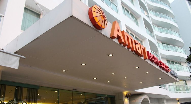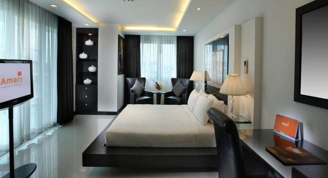 Отель Amari Nova Suites 4* расположен в центре города Паттайя. Это небольшой городской отель почти без территории. Бассейн открытый, бассейн с джакузи, фитнес-центр располагаются на верхних этажах отеля. Номера – супер! Стильный дизайн, большие площади, В номере: санузел с душем (ванной), фен, халаты, тапочки, гладильная доска, утюг, балкон (терраса), кондиционер, кухня, кофеварка, микроволновая печь, мини-бар, посуда, письменный стол, радио, сейф, телевизор, DVD-плеер, телефон. Главное – не смотреть в окно. Окна могут выходить на стройку, мусорку, лачуги… Это жилой центр Паттайи. Отель расположен не на первой и не на второй линии. До городского пляжа надо идти. В здании расположен ice- бар, выполненный изо льда. В апреле 2009 проводилась «беспощадная» акция. Платишь минимальную сумму, одеваешься и в баре пьешь спиртное без ограничений в течение 20 мин. Очень жаль людей, которые после выйдут на жару 35-40 градусов. Отель рассчитан любителей активного отдыха без детей, на компании, молодежь.
