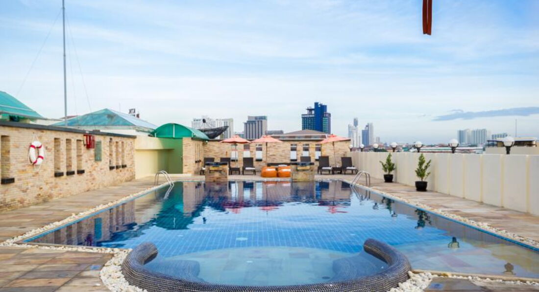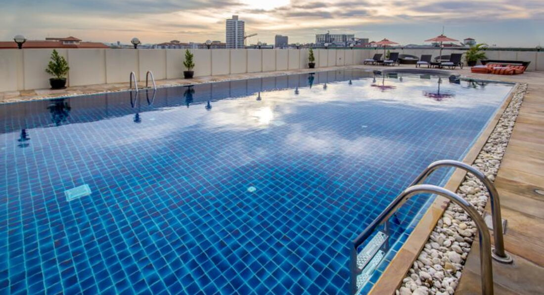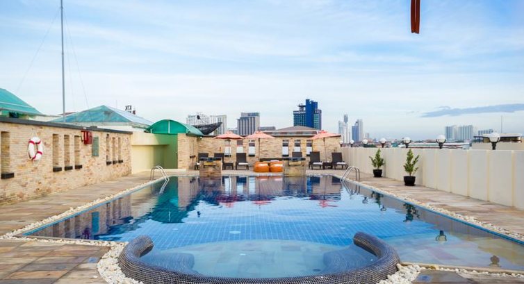 Прекрасный бассейн на крыше, в котором можно освежиться после прогулки по жаркой Паттае. В бассейне есть джакузи.