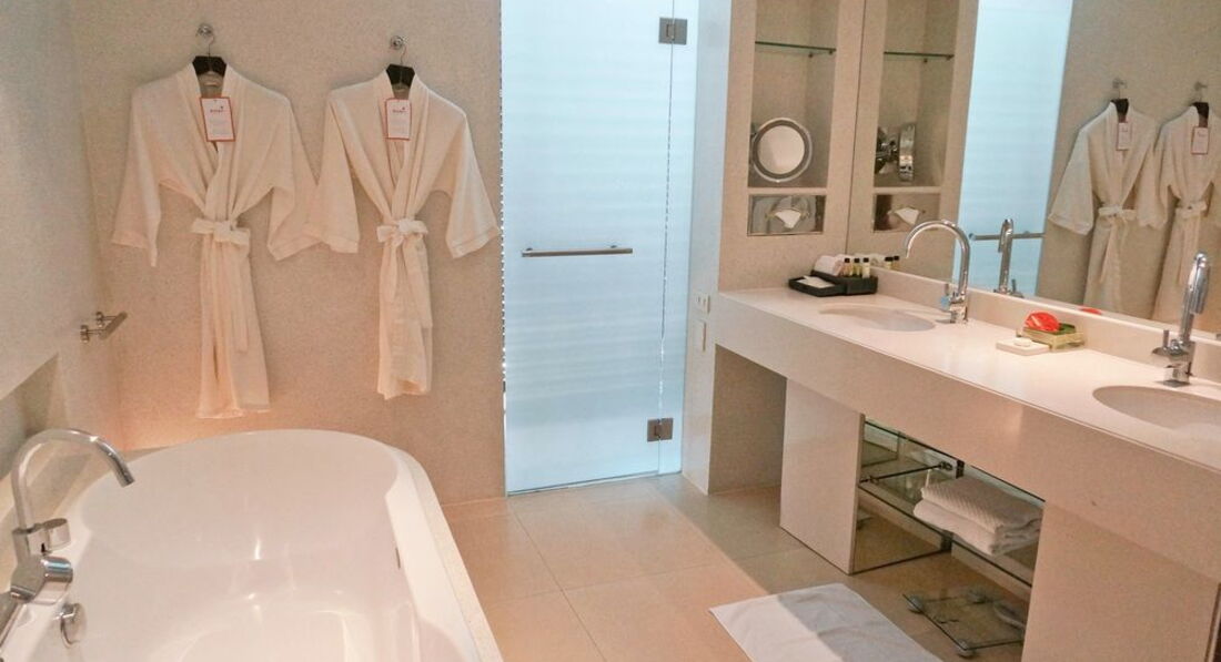 Постараюсь коротко. В Паттайе не первый раз, раньше жили в Шератоне и Хард Роке. Летаем самостоятельно. Отель бронировали на Booking на первые 5 дней после прилета, с дальнейшими планами решили определиться на месте. Номер на 18 эт, с видом на море, 49 м.кв. В целом отель хороший, твердая 5*, но не premium уровня. Немного напрягает присутствие 4* корпуса. Я такие отели называю "уставшими". Шератон намного! лучше, но дальше от центральной жизни. Заметно, что отелю необходим ремонт, и хотя бы элементарная замена грязных старых прикроватных ковриков. У отеля есть территория, что для городского отеля редкость,поют птицы. 2 бассейна, небольшие, простые, без ландшафтного дизайна. Много индусов (у них здесь какая-то база), которые бесцеремонно тебя фотографируют когда ты дремлешь на лежаке. Завтраки отличные! Сервис отличный! Очень хорошо организован номер: достаточно мебели/ шкафчиков, кофейно-чайный набор удобно расположен в шкафу, кофемашина, живые цветы и фрукты, отдельный гостинный уголок, хороший рабочий стол, есть напольные весы. Многие жалуются, что ванная комната находится в одном пространстве с жилой зоной. В нашем номере на 18 м. эт. Ванная комната была отделена от жилой зоны полноценной стеной и дверью, в номере 2 отдельные кровати, но нам так и надо было (мы с подругой путешествовали). Заселили в 11.00 утра без проблем, молодцы.