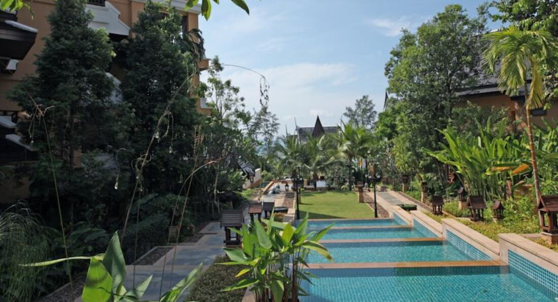 Очень красивый отель, с большой территорией, очень много зелени, каскады бассейнов. Расположен на возвышенности, откуда открывается потрясающий вид на море. Обратите внимание, что есть депозит при заселении, от составляет 2000 Батт/сутки.