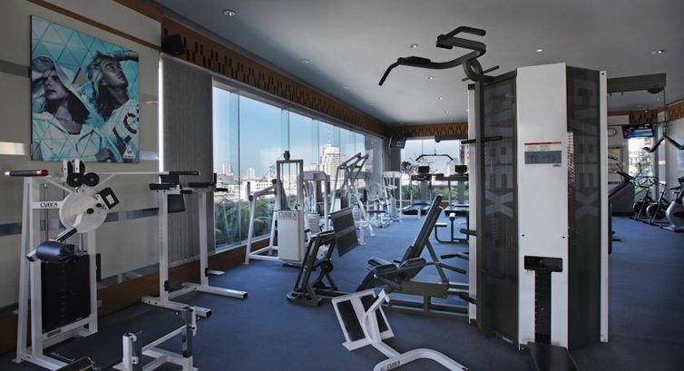 На 8 этаже находиться бассейн, спортивный клуб, бар, а так же комнаты переодевания (внутри 2 сауны: финская и турецкая, душ, маленькие бассейны - после парилки). Бассейн небольшой, вода достаточно холодная - освежает хорошо. лежаков не много, но места есть всегда, там же находится Spa. Цены в баре - высокие (стакан воды Перье со льдом - 200 бат)