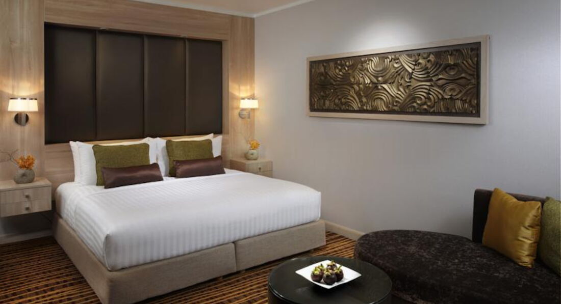 Отель обалденный. Находится в центре Бангкока,прямо рядом с 88 этажным "Байоком". Были всего два дня-проездом на Бали и обратно. Все очень понравилось. Обратно размещались на 23 этаже в люксе двезкомнатном- стены практически все стеклянные от пола до потолка-вид обалденный,просто дух захватывает. вечером на 10 этаже можно покушать на открытой площадке возле бассейна,рядом светятся небоскребы-вид шикарный. Завтраки выше всяких похвал,все,что угодно твоему желудку. Матрасы просто шикарные-мы выспались буквально за несколко часов, проснулись очень рано,а чувство,как будто двое суток спали. Теперь везде ищем такой же матрас домой-хочется еще испытать такое.В холле вечером живая музыка-тайки играют на местных инструментах. Рядом два торговых центра-были в одном-тряпки в основном,во второй не успели. В общем в следующий раз опять обязательно будем остановливаться в этом отеле.