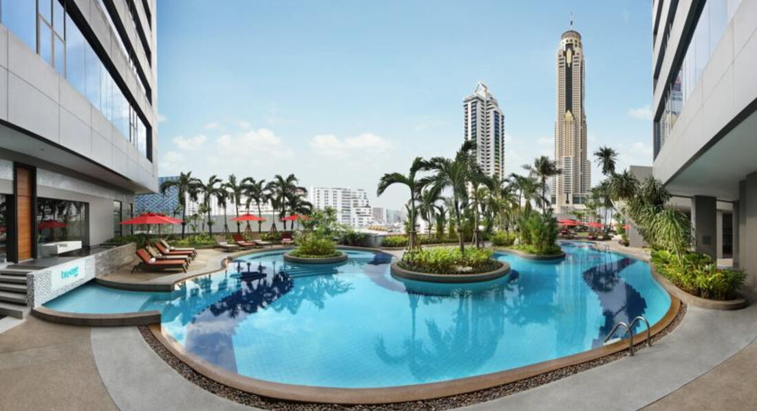 мы с супругой летели на самуи в одноименный отель и решили остановиться в бангкоке на три дня, в мае конечно жара страшная, в обед перемещаться ужасно, но вот вечером уже легче. Остановились и не пожалели, нам сразу предложили в виде комплимента номер на 33 этаже, номер классный, с кадинетной зоной, окна понорамные, окна выходили на байок скай, в шаговой доступности сиам парагон, дискавери, централ ворлд и так далее.