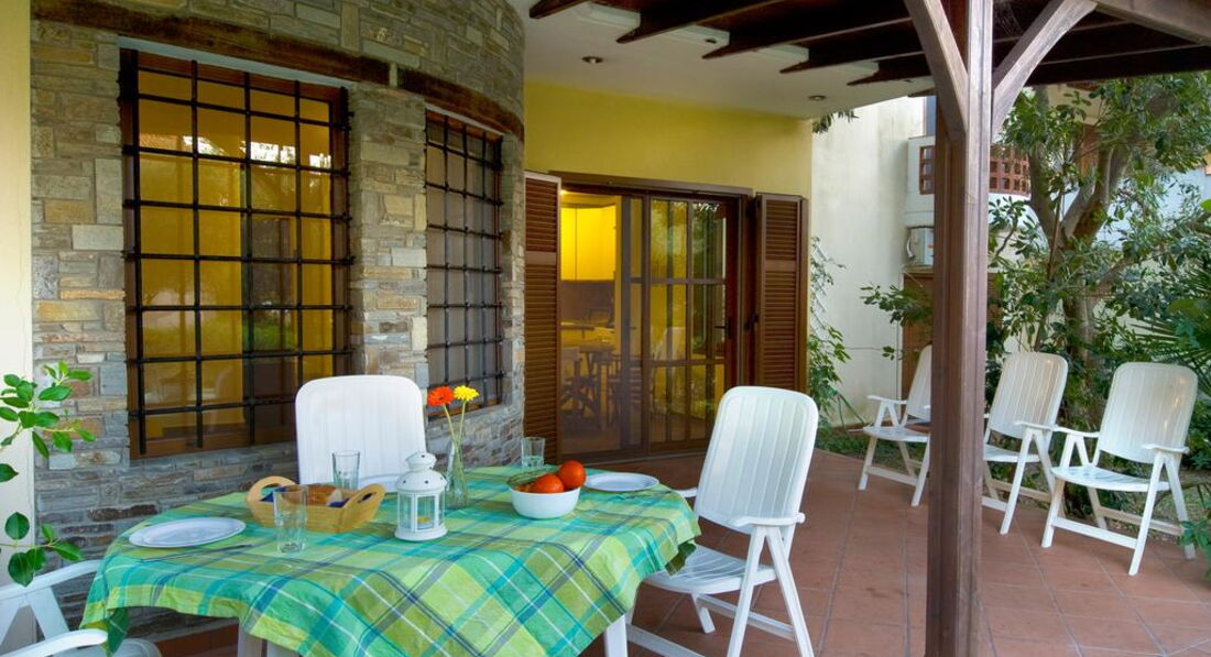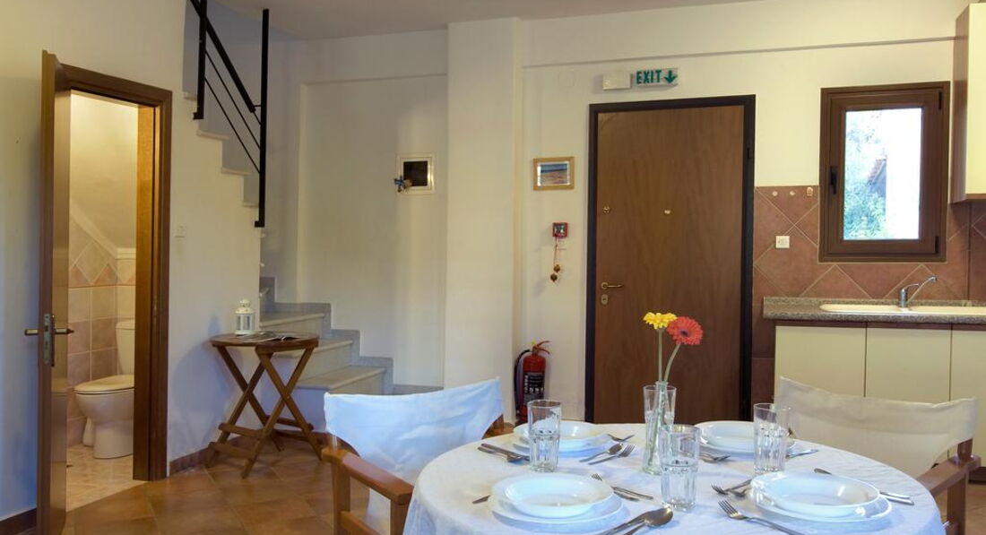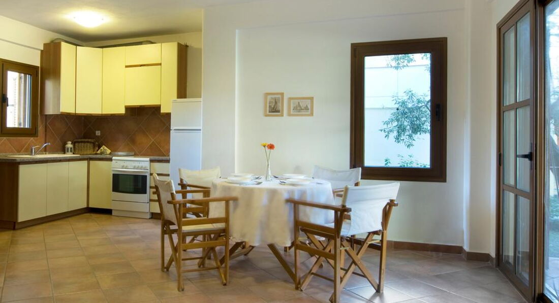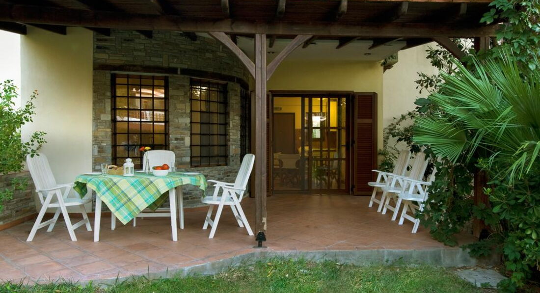Типи номерів: Кожна вілла площею 57 кв. 1-й поверх: вітальня та кухня з необхідним обладнанням (холодильник, електроплита, чайник, тостер), двоспальний диван-ліжко, на кухні – стіл, на веранді – стіл та 6 стільців, WC, телевізор, постільна білизна, рушники, вентилятор, фен. 2-й поверх: 1 спальня з двоспальним ліжком, невеликий балкон, простора вбудована шафа, 1 спальня з 2 односпальними ліжками, комод, душова з WC, пральна машина, велика веранда з черепичним навісом. На кожній віллі є затишна мансарда із двоспальним ліжком. Розміщення min 2 - max 6 осібУ номері: ТБ Фен Холодильник Чайник