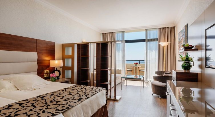 Номери Junior Suite з прямим видом на море дійсно особливі: вони майже вдвічі більші за стандартний номер, мають просторий балкон з прямим видом на Середземне море. Крім того, ці номери мають простору вітальню з великою софою, яка розкладається при необхідності в двоспальне ліжко.