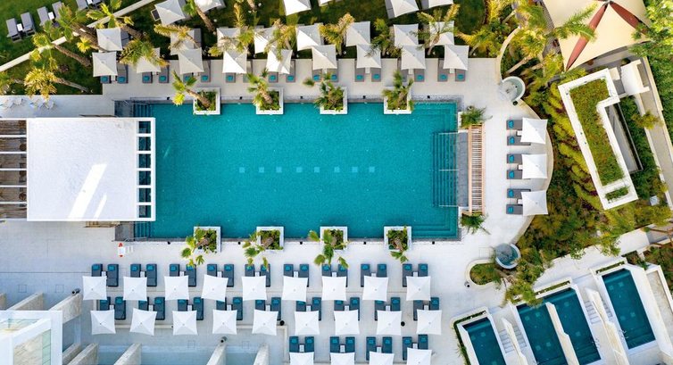 • Superior Cabana With Private Pool (макс. 2 чол., 32 м2) - просторий однокімнатний номер з гостьовим куточком, ванна кімната, тераса з приватним басейном (20 м2), є 2 шезлонги та парасолька, вид на море