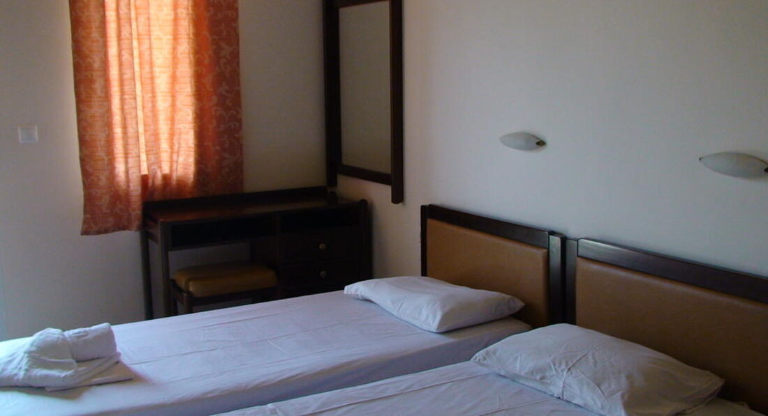 Типи номерів: 11 Standard MV/PV Room (основна будівля, 0-2 поверх, 15 м2, вид на гори або басейн, макс. розм. 2 чол., одна спальня та ванна, балкон – у 8 номерах, тераса – у 3 номерах, вікна у всіх номерах). 8 Standard SSV Room (основна будівля, 1-2 поверх, 15 м2, вид на море, макс. розм. 2 чол., одна спальня і ванна, балкон і вікна - у всіх номерах). 3 Studio 3 pax Room (основна будівля, вид на сад, басейн або гори, 20 м2, макс. розм. 3 чол., одна спальня та ванна, обладнаний кухонний куточок, балкон – у 2 номерах, тераса – в 1, вікна всіх номерах). 5 Apartment (основна будівля, вид на море, вид на море або на гори, 35 м2, макс. розм. 4 чол., 2 кімнати: спальня, вітальня, міжкімнатні двері, обладнаний кухонний куточок, балкон – у 4 номерах, тераса - В 1, вікна - у всіх номерах).У номері: • душ • кондиціонер (7 євро на день) • супутникове ТВ • міні-холодильник (безкоштовно) • 2 стільці • wi-fi (безкоштовно) • сейф (платно)