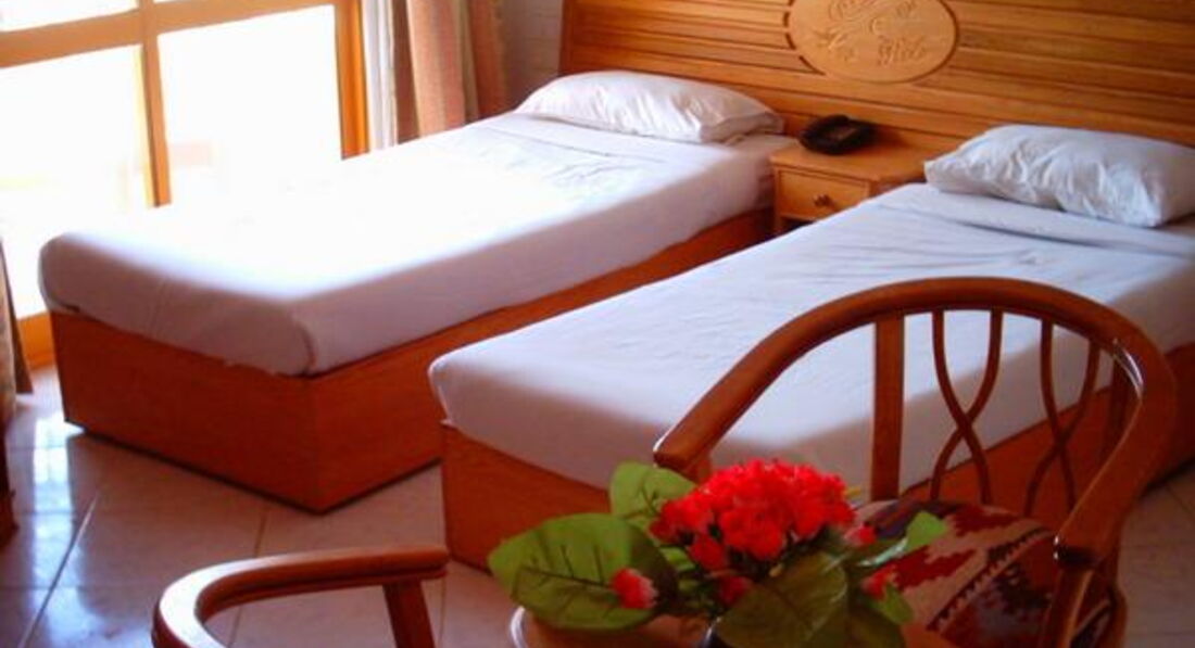 Была в этом отеле в апреле 2010, ездили с коллегами. Номер предоставили сразу, первый вариант не устроил, нас было трое, а дали двушку, сразу заменили на сюиту, спальня +еще огромнейшая комната, заселением остались довольны, все работало,денег за это не доплачивали. Поскольку путевка была очень дешевая, то мы расчитывали на худшее.Что касается питания, тои здесь мы остались довольны, до этого была в Турции в 4*, то там мы ходили голодные, а здесь были и фрукты, и пироженые, и мясо давали, даже вроде какую-то рыбеху))) На пляж ездили на автобусе,пляж маленький, но чистенький,ездили бесплатно. Единственный минус-это отсутствие территории, но мы ездили в город, тем и развлекались))) В этот раз взяли в Шарм, в 4*, будем сравнивать)))