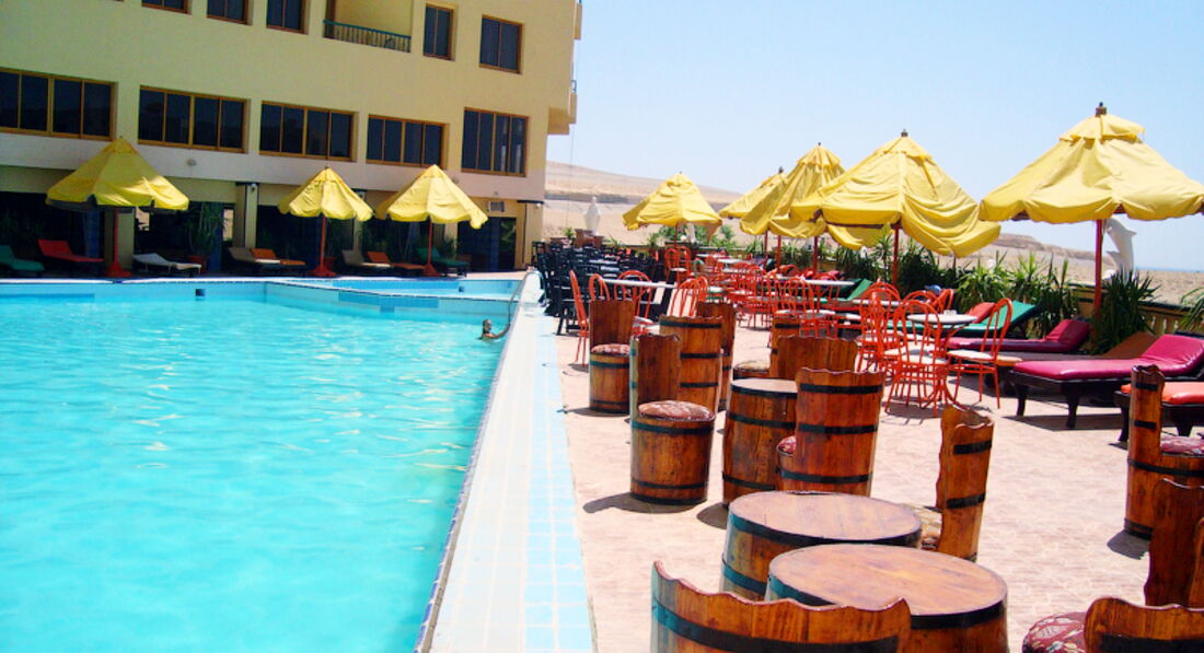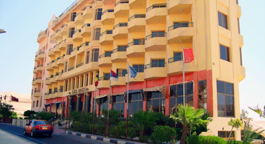 Вполне сносный отель за эту цену самый дешевый среди всех предлогаемых. Очень понравились 2 бассейна, которые, кстати, чистили почти каждый день. Питание и правда однообразное, практичестки каждый день курица, но с голоду не помрешь, завтраки, кстати вполне приемлемые. С чем действительно проблема, так это с напитками. Пиво и газировку наливают в "стаканы" по 100 мл., а часто и этого нет. Номер был с видом на пустыню, но шумно в нем не было, машин по той дороге ездит мало. Кондиционер работал, фен тоже, холодильничек тоже. Прибитали в номере каждый день, так что грязно не было. Проблемы с водой были первые 2 дня, потом все нормально. Если не было горячей, так у них там холодная 40 градусов. Расположение отеля вполне хорошее хочешь иди (или едь) в старый город, хочешь на аллею, отель по середине. Народа в отеле было очень мало. Прблем с пляжем не было, ходили на платный городской (бесплатно), лежаков, матрасов и зонтков хватало всем, море чистое, яхты совсем не мешают и никокого мазута не плавало. Вход в море хороший, ходили без обуви. Среди каралов рыбы всякие плавают. На счет развлечений. В отеле НИКАКИХ, может потому, что народа мало. Видно, что отель задумывался деиствительно 4* с широкой инфраструктурой (дискотека, прачка, парикмахерская, спортзал, сауна, и т д ) но ничего не работало. В целом впечатления вполне положительные