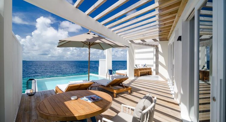 9 Ocean Lagoon House (230 кв.м., водні вілли, що складаються зі спальні, вітальні зони, санвузла, душ під відкритим небом. Є свій басейн і приватна обладнана тераса. У номері є винний бар.),