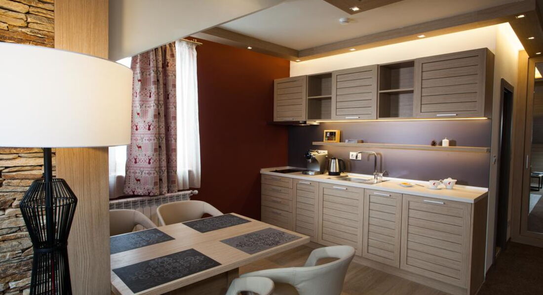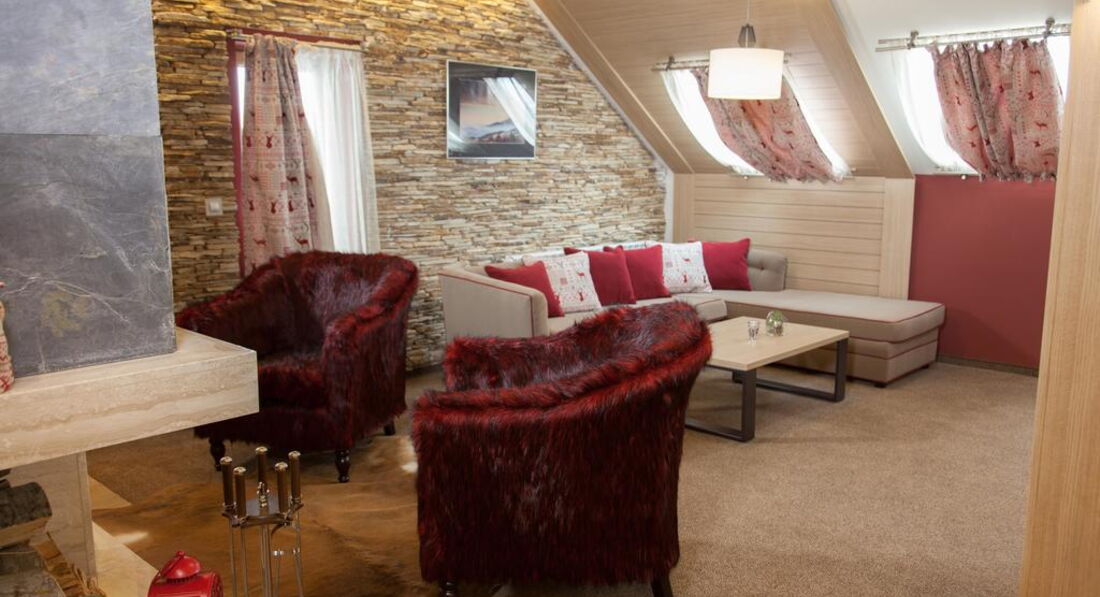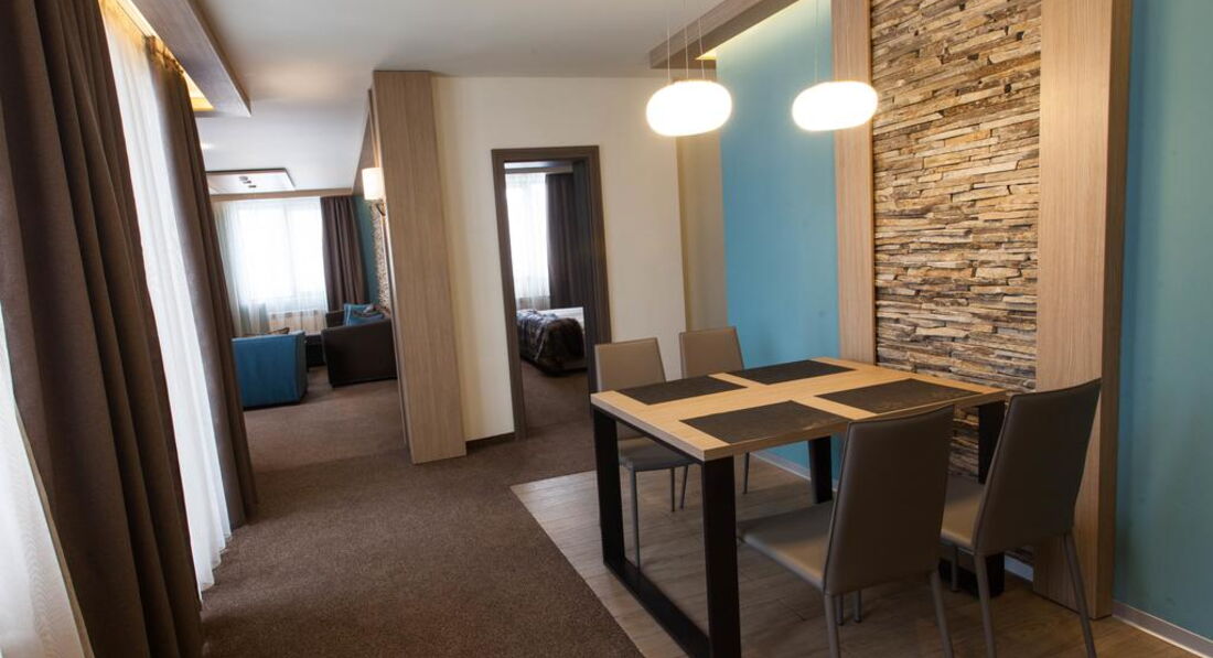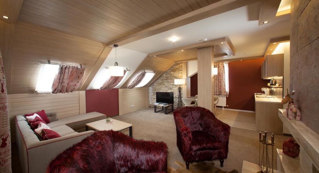 • сейф • зміна білизни: щодня • room service: платно • кондиціонер • зміна рушників: щодня • ванна (One Bedroom Apart with Fireplace) • прибирання номера: щоденно • телефон • капці • фен • ТБ: кабельне • міні-бар (платно) • душ (крім One Bedroom Apart with Fireplace) • Wi-Fi (безкоштовно) • халат • балкон не у всіх номерах Територія та послуги: • хімчистка • критий басейн • бар (лобі-бар) • конференц-зал (40 місць, з обладнанням) • ресторан (59 місць) • пральня • прокат автомобілів • паркування безкоштовно • Wi-Fi безкоштовно • кімната для зберігання гірськолижного обладнання (безкоштовно) Розваги та спорт: • сауна (безкоштовно) • парна (безкоштовно) • джакузі (безкоштовно) • масаж (платно) • тренажерний зал (безкоштовно) • процедури для обличчя та тіла (платно) Для дітей: • дитячий клуб (4-12 років) • дитяче ліжечко (за запитом, безкоштовно) • дитячі стільці у ресторані Живлення: HB До оплати приймаються кредитні картки: Master Card, Visa, Dinners Club.