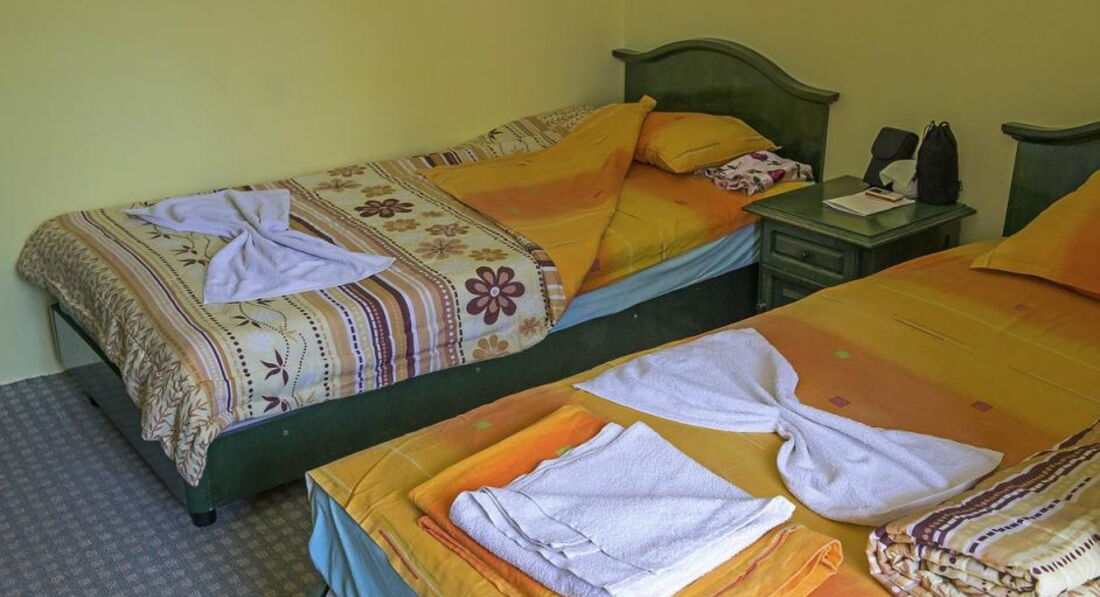 Перед поездкой начиталась ванильных отзывов об этом отеле и решила поехать с тремя детьми. Разместили в 10 утра ,сразу, дали как и заказывали два номера 2 и 3 чел.Отель старый,был сделан легкий косметический ремонт. В номерах ковролин, который не пылесосят совсем, шкафы и тумбочки пахнут сыростью. Такой вонючей постели у меня не было никогда. Белье чистое, но матрас, подушка и одеяло невыносимо пахли у всех пятерых.Душевой нет, дырка в полу и вода на полу не высыхала сутками, унитаз не смывал, вода горячей была раза два, текла чуть теплая. Полотенца поменяли за две недели один раз, белье тоже, мыла дали два малюсеньких куска в день приезда(детям-3) и не добавили до отъезда.До пляжа идти 300 метров,через мостик и поле, это не напрягало, северный (ближний)пляж с водорослями, центральный -почище, лежаки и зонты платные. До центральной улицы пилить метров 5оо и вечером обратная дорога была трудной.Море грязное, возможно, после потопа. Я много путешествую и адекватно смотрю на мир. Болгария абсолютно не колоритная, кухня совсем невкусная,природа скудная.Признаюсь,местные люди милые,стараются говорить по-русски, по-английски не понимают). Но уровень сервиса на нуле. Больше не вернусь ни за что. Да, кстати, по питанию поставила 5, потому что мы в отеле не питались.