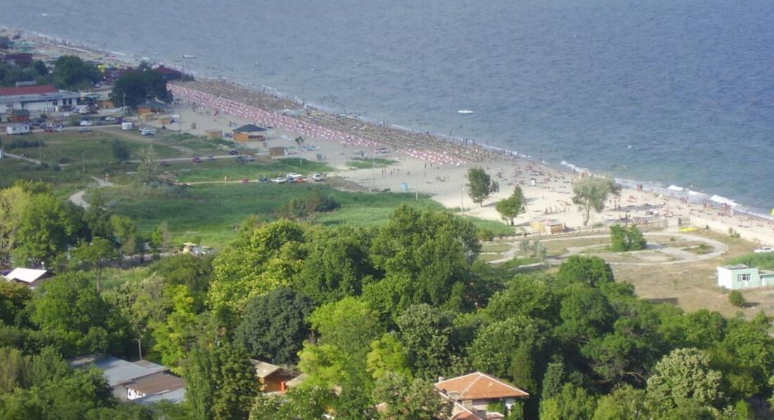 Пляж: песчаный, большой по протяженности, достаточно чистый. Заход в море по песку. Направо расположены детские лагеря, налево через речку - нудистский пляж, далее начинаются пляжи Албены. Зонтики и лежаки платные. Цены разные 5-7 левов за зонтик в день плюс лежак (цену не знаю). Это совсем не дешево, т.к. курс 1 евро - 1,9 лев. Можно было найти много свободных мест и отдыхать со своим зонтиком.