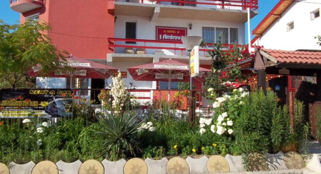 Отдыхали с женой в августе 2013 г. Небольшой отельчик расположен на тихой улочке, до моря идти минут 10 - 12 через поле. В отеле 2 корпуса - старый Amirov и новый Amirov 2 ( принадлежит дочке Светлане ) в новом корпусе завтрак проходит на крыше отеля , а в старом в дворике - вот и все отличия . Номера небольшие но уютные , всегда есть горячая вода , холодильник , телевизор , в коридоре стоит гладильная доска . Небольшой балкончик . Поначалу пугало отсутствие кондиционера , оказалось вполне терпимо , ночи прохладные . ( есть номер с кондиционером , доп. плата 5 лев в день ) Рядом с отелем находится бистро - Морская звезда , где можно недорого и вкусно отобедать . На ужин ходили в центр города - хорошие ресторанчики Аякс ,Извора ,Болгарка . Отдых в Кранево тихий , спокойный и размеренный ( как бут-то на даче ) , невысокие цены ( по сравнению с другими курортами Болгарии ) и людей поменьше . На пляже всегда найдется свободный зонтик и лежак . Пляжи широкие , песчаные - море теплое ( правда очень много водорослей и временами попадаются медузы ) Для экономичного отдыха очень даже рекомендую .