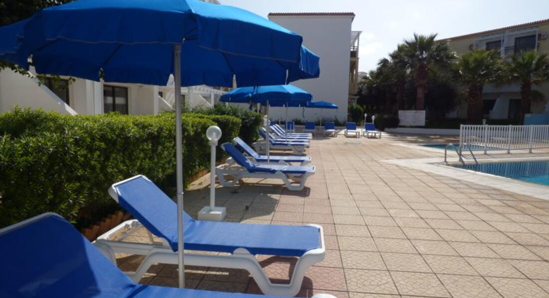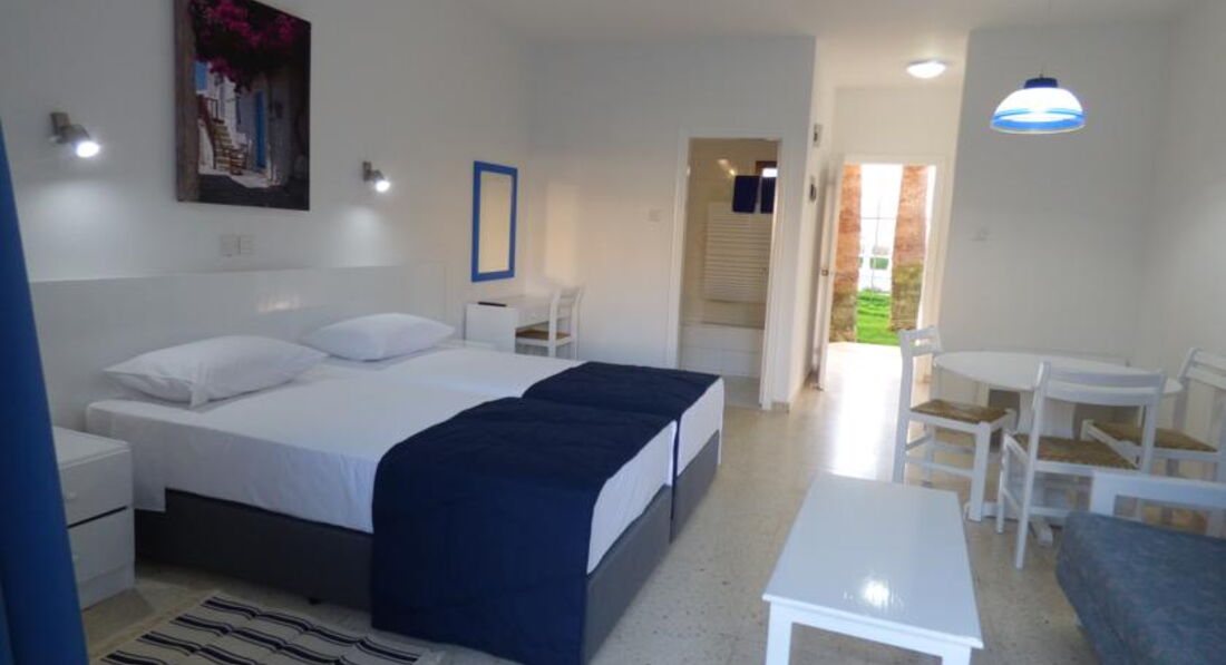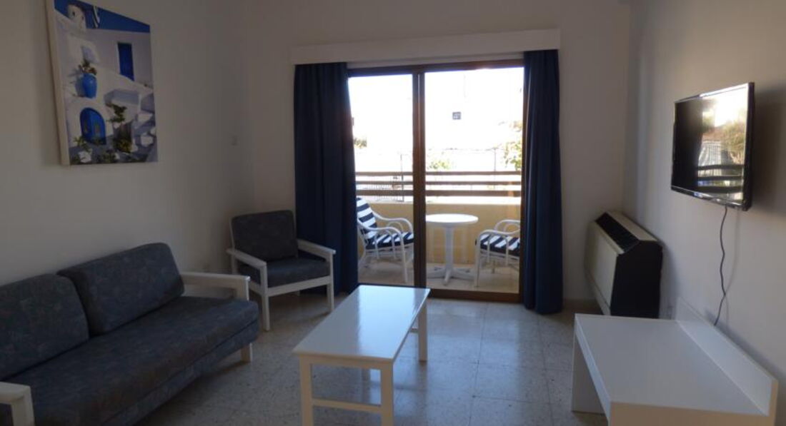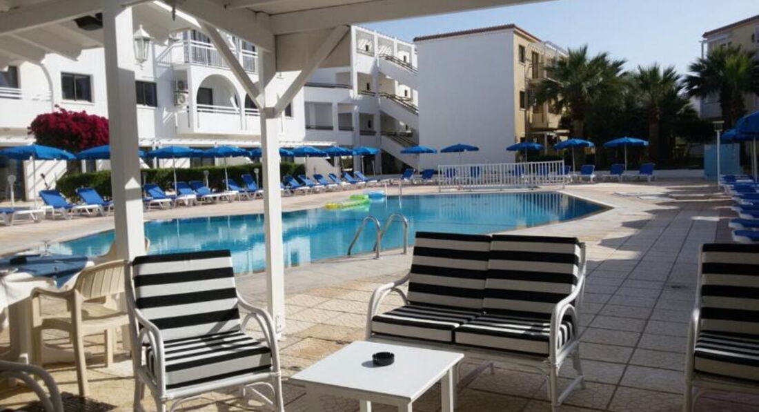 Розташовані між курортами Протарас та Паралімні, в тихому районі Каппаріс. Сімейні апартаменти, обладнані кухнею, знаходяться у віддаленому куточку курорту Протарас і ідеально підходять гостям, які віддають перевагу тихому спокійному відпочинку. До центру міста Протарас з його магазинами, барами та ресторанами можна дістатися автобусом, дорога займе не більше 10 хвилин. Автобусна зупинка у кроковій доступності від готелю. На автобусі також можна доїхати за 20–25 хвилин до знаменитого міста Айя-Напа та аквапарку.