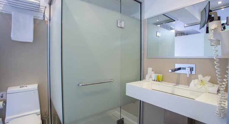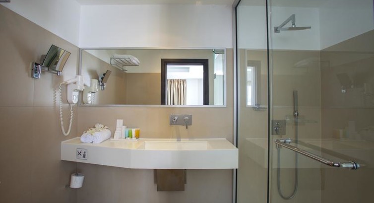 Теперь о номере: стандартный достаточно места, есть чайный набор, шкаф, стол, стул, сейф и Wi-Fi бесплатно. В номере мини бар, через отельного гида попросили освободить его, чтобы использовать холодильник, сделали все без проблем. Очень прикольно выглядит стеклянная стенка между душем и комнатой. Мебель в хорошое состоянии. Плоский телевизор "Тошиба" - 1 русскоговорящий канал "Планета РТР". Чайный и душевой набор пополняется каждый день. Вообще отель оставляет впечатление домашнего, уютного отельчика. Конечно если быть придирчивыми можно найти "косячки".