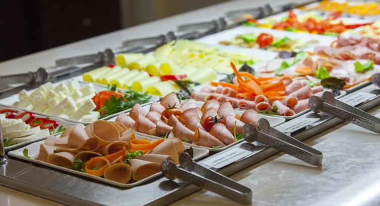 Завтрак - шведский стол. Все вкусно: омлет, грибы, фасоль, глазунья, сосиски, колбаски, печеные овощи, несколько видов сыров. Закуска различная: оливки, маслины, огурцы, помидоры, рыба. Выпечка разнообразная и вкусная, фрукты, в т.ч. арбузы.