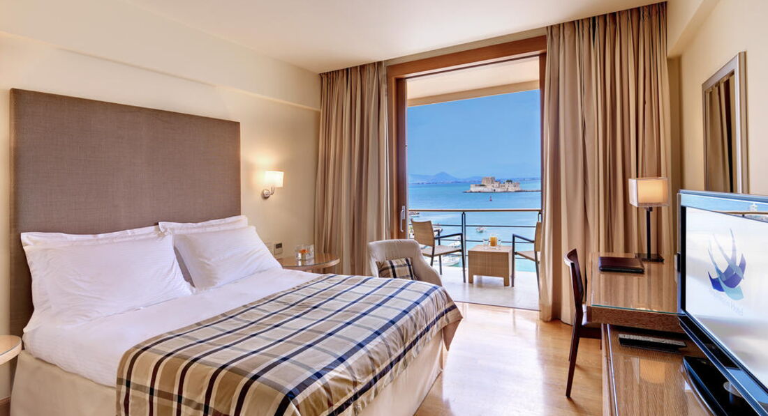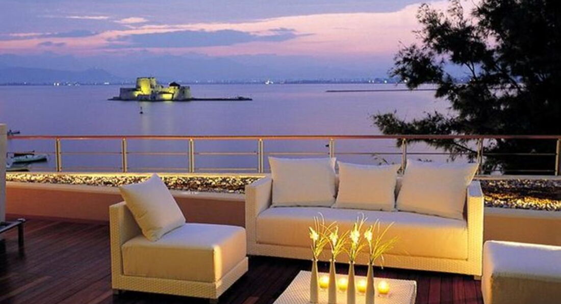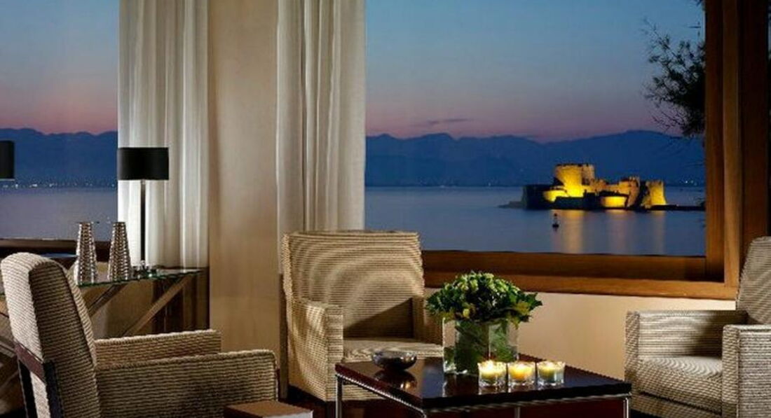 Стильний готель, збудований на пагорбі з видом на місто Нафпліон. Сучасний номерний фонд та висока якість обслуговування, з усіх номерів відкриваються чудові краєвиди. Гості готелю можуть насолоджуватися певною інфраструктурою сусіднього готелю Nafplia Palace. Анімації нема. Рекомендуємо для романтичного та сімейного відпочинку.