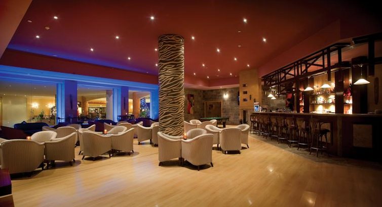 На самой территории три бара - на террасе, около бассейна, и на пляже. в самом бассейне бар не работал. Был небольшой барчик около бассейна корпуса sport. Также в трех местах можно получить полотенца. Четыре ресторана- один основной, в остальные по записи (запись с утра с 10 до 12 около рессепшен) итальянский, барбекю и рыбный, ну не ах, ни один, но все таки получше итальянский. Кормят на убой, и мясо, кура, рыба, рис, паста, овощи и на гриле и свежие. Голодным остаться сложно.
