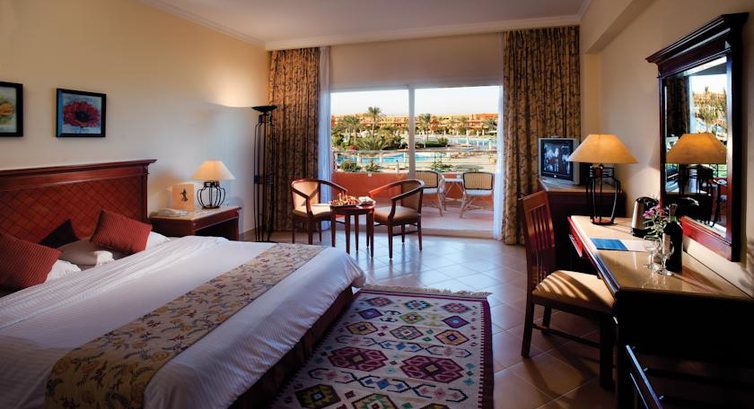 Отдыхали с мужем в марте 2013 года решили отметить юбилей в Египте. Летели по горящему предложению 900$ на двоих. Конечно на рецепшене с нас сразу в открытую начали качать деньги просили 80$ я была в шоке,дали 30$ потом как оказалось и 10$ хватило бы. Номер дали хороший,чистый и рядом к ресторану,бару где есть зона wi-fi. Питание конечно не очень,большие очереди,алкоголь тоже фе да ещё и наливают в плохо вымытые стаканы.Хорошо что взяли свой алкоголь.Пляж чистый,но минус что пирс сильно длинный.Зато бассейнов куча и территория красивая.Еще понравился рыбный ресторан,очень вкусно готовят и итальянский тоже удивил.Если с детками отдыхать то горки не удобно расположены и там рядом нет бара,чтобы хотя бь воды попить.В целом если не обращать на мелочи,то за такие деньги отличный отдых и отель.