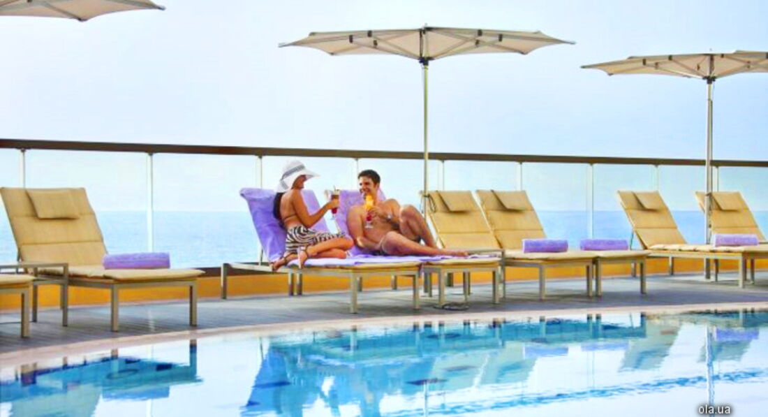 На бассейне, я заметила, что слишком мало солнца из-за стоящих вокруг небоскребов. Но может для кого-то это и плюс.