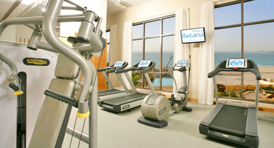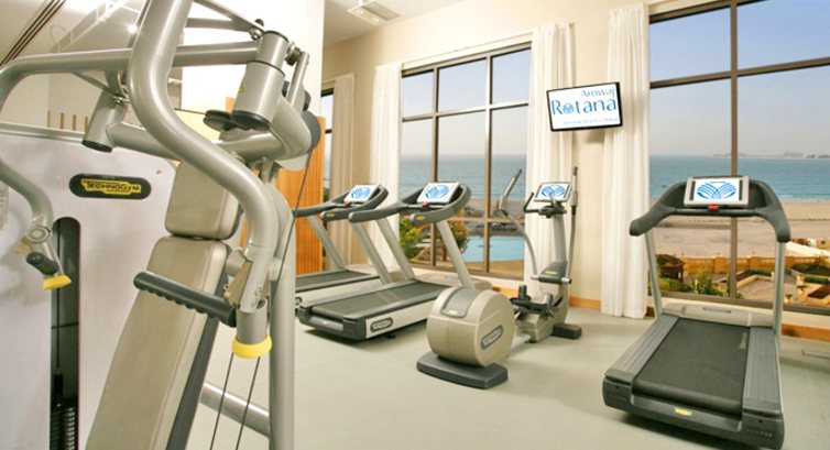 В отеле есть открытый бассейн с лежаками и зонтиками. Бассейн небольшой, в высокий сезон мест не хватает. Но для любителей солнца можно взять пляжный набор (полотенца и небольшой зонтик) и уйти загорать на пляж или арендовать лежаки там, но мне это показалось довольно дорого (2 лежака и зонт на день 200 дирхамов). Хочу отметить тренажерный зал - для отеля неплохо укомплектован и большой по площади. Для любителей релакса есть еще джакузи,сауна и турецкая баня.
