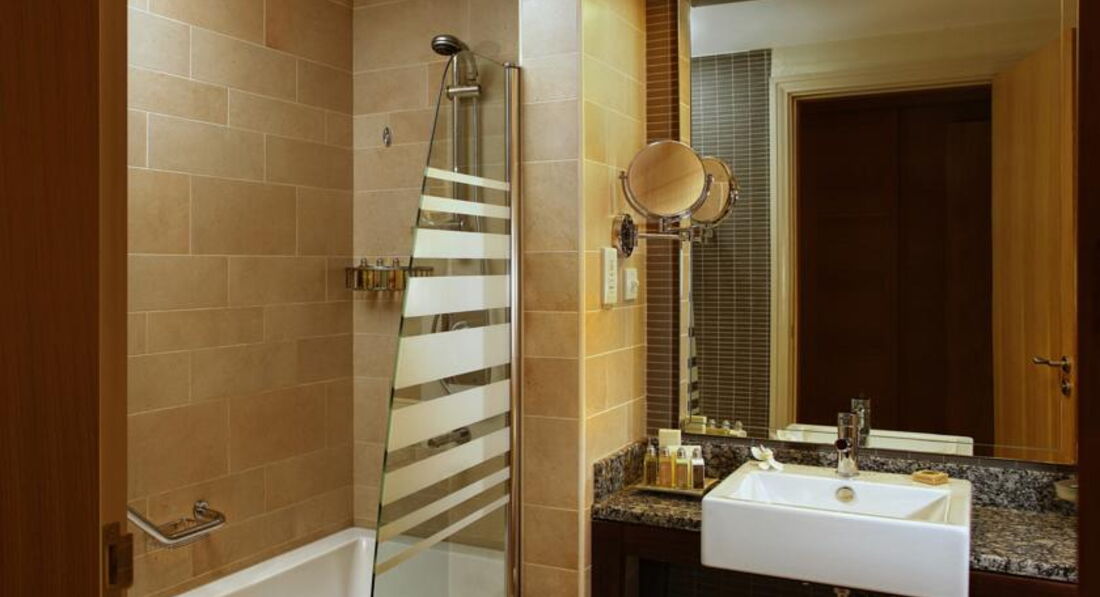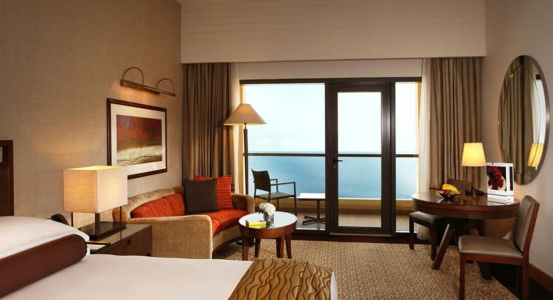 В номере все хорошо. Понравилось то, что есть балконы, можно вечером посидеть, посмотреть на вечернее море и променад. Хотя мебель и ковер для отеля 5 звезд в Дубае уже довольно "уставшие", кое-что уже пора бы и заменить. А так все есть - халаты, тапочки, утюг, чайник, чайный набор, каждый день приносят воду в бутылках. Но уборка номера весьма посредственная. Гость я либеральный, под микроскопом ничего не разглядываю, НО ковер, кажется, не пылесосят вообще, на балконе тоже не убираются. Крошки и какие-то нитки валялись, пока я сама их не убрала на третий день. Стекла все в отпечатках пальцев, за неделю так и не стерли. Впечатление такое, что уборка заключается только в перестилании кровати, развешивании полотенец и выносе мусора. Плохо.