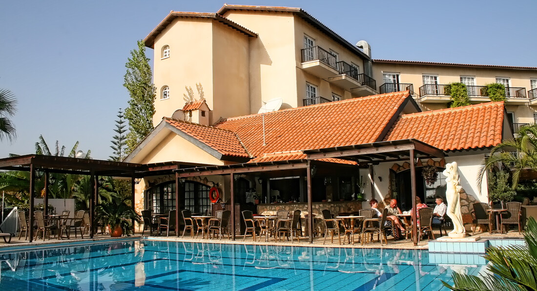 Очень довольны, что выбрали именно этот отель. Он очень уютный, такой маленький семейный. Интерьер очень приятный: небольшие окошки с массивными деревяными рамами, шторки вязанные крючком грубой вязкой, рецепшин переходящий в помещение бара, где имеется бильярдный стол, камин, везде картины с пейзажами Кипра и всё декорировано масивным тёмным деревом. Очень понравился ресторан, где мы и трапезничали. Столы под открытым небом, над ними деревяный навес, по которому плетётся виноград. Огромные грозди розового и зелёного винограда свисают прямо над головой. Бассейн маленький. Территория отеля совершенно не большая. Имеется теннисный корт. Вся остальная площадь - сад из цитрусовых и гранатовых деревьев. Питание завтрак - шведский стол, ужин - меню. Ну не особенно вкусно было, если честно. Порции большие, как бы и разнообразные, но всё одинакового вкуса. Сервис отличный. Отличный в моём понимании - ненавязчивый. Отдельно хотелось бы отметить месторасположение отеля. Он находится практически на окраине Протараса. Там отличные пляжи. Т.Е. не километровая береговая линия, уходящая за горизонт и толпы загорающих туристов. Пляжи Протараса - это множество маленьких лагунок, очень живописных и с кристально чистой водой. НАМ ОЧЕНЬ ПОНРАВИЛОСЬ!
