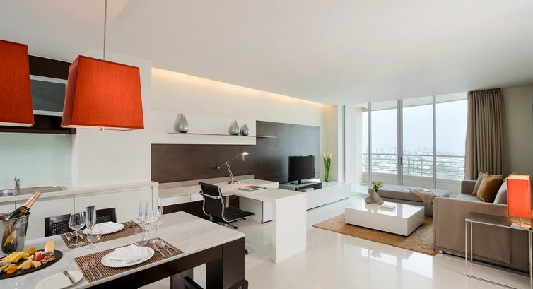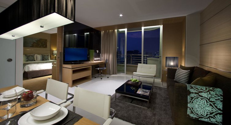 Типи номерів: • 36 deluxe one-bedroom suite (64 кв.м, макс.3 чол) • 72 skyline one-bedroom suite (64 кв.м, макс.3 чол) • 16 kasara one-bedroom suite (64 кв.м, макс.3 чол) • 36 two-bedrooms suite (121 кв.м, макс.5+1 чол) • 72 skyline 2-bedrooms suite (121 кв.м, макс. 5+1 чол) • 16 kasara 2-bedrooms suite (121 кв.м, макс. 5+1 чол)У номері: • кондиціонер • ТБ • телефон • Wi-Fi (платно) • ванна, душ • сейф • міні-бар (вода щодня безкоштовно) • набір для приготування чаю/кави • праска • балкон