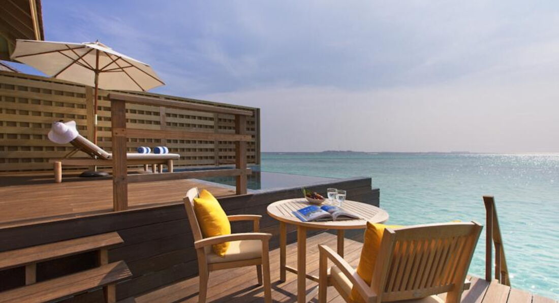 10 Deluxe Ocean Water Pool Bungalow (125 кв.м., водне бунгало з вітальнею та басейном на дворівневій терасі).