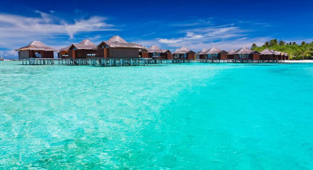 В отеле только водные бунгало. Деток не принимают.