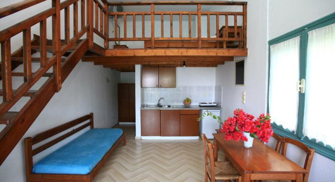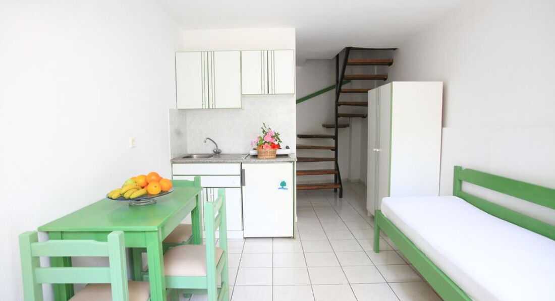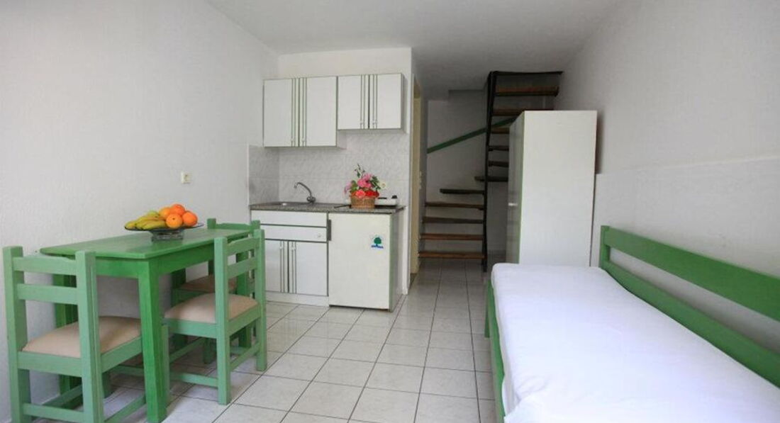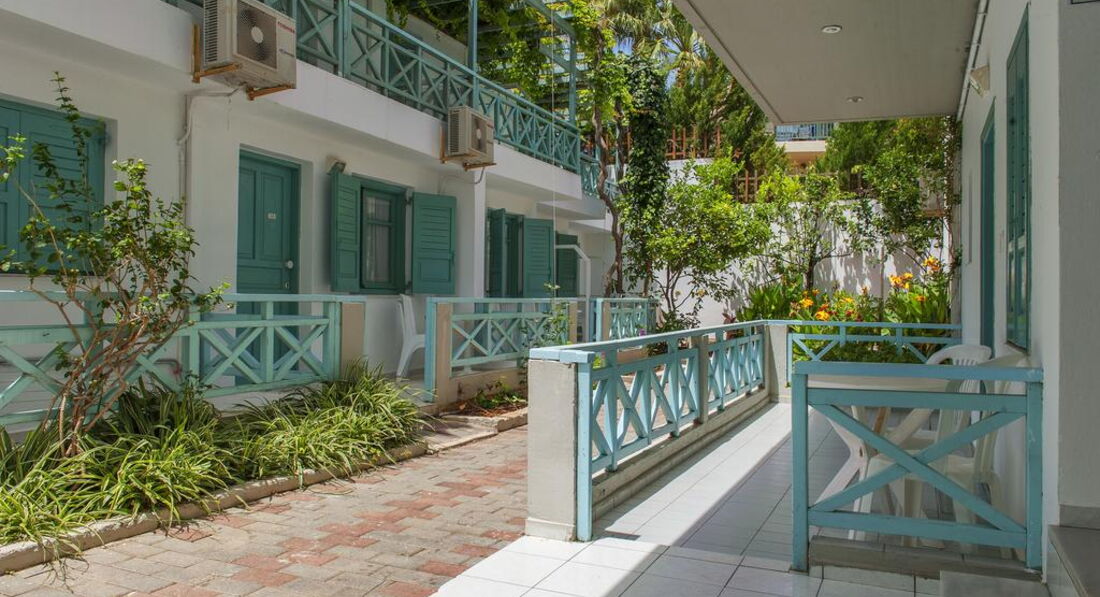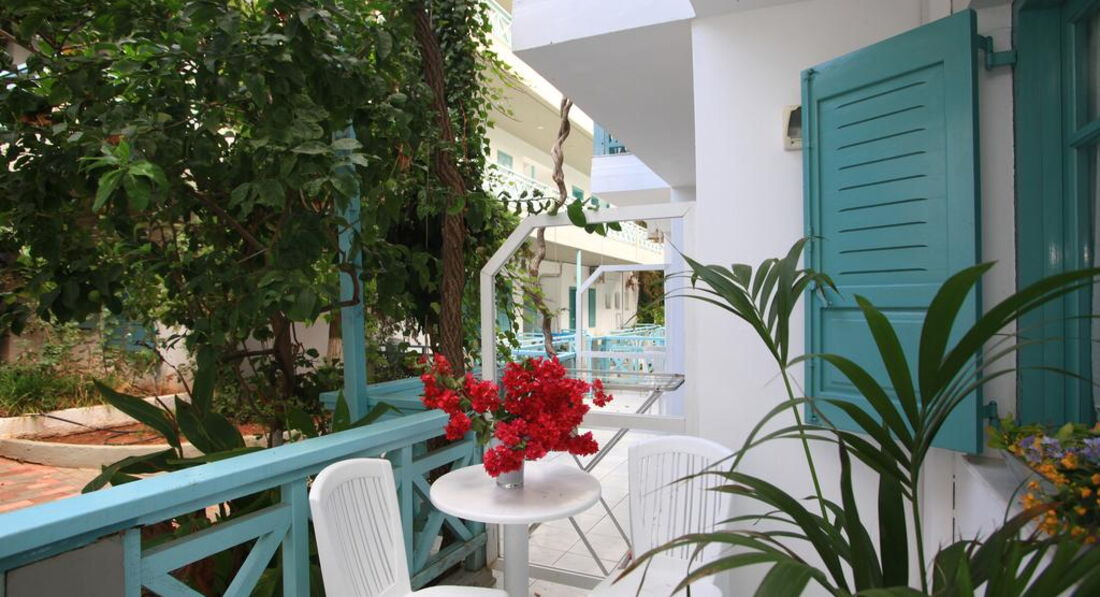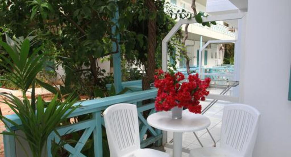 Типи номерів: 8 Studio 2 pax (основна будівля, 0-2 поверх, 15 м2, вид на море, сад або басейн, макс. розм. 2 чол., одна спальня та ванна, обладнаний кухонний куточок, балкон – у 4 номерах, тераса – в 4 номери, вікна у всіх номерах). 3 Studio 3 pax (основна будівля, 0-1 поверх, 20 м2, вид на околиці, макс. розм. 3 чол., одна спальня та ванна, обладнаний кухонний куточок, балкон – в 1 номері, тераса – в 2, вікна всіх номерах). 3 Maisonette 3 pax (основна будівля, 0 поверх, вид на околиці, 25 м2, макс. розм. 3 чол., обладнаний кухонний куточок, 2 кімнати: одна спальня та вітальня, відсутні міжкімнатні двері, балконів у номерах немає, тераса та вікна) – у всіх номерах). 2 Maisonette 4 pax (основна будівля, 0 поверх, вид на сад або басейн, 30 м2, макс. розм. 4 чол., 2 кімнати: одна спальня та вітальня, відсутні міжкімнатні двері, є обладнаний кухонний куточок, балконів немає, тераса та вікна – у всіх номерах). 8 Apartment (основна будівля, 0-2 поверх, вид на море, басейн або околиці, 35 м2, макс. розм. 4 чол., 2 кімнати: спальня, вітальня, є міжкімнатні двері, обладнаний кухонний куточок, балкон – у 6 номерах , тераса – у 2, вікна – у всіх номерах).У номері: • душ • туалетне приладдя • фен (за запитом) • кондиціонер (7 євро на день) • супутникове ТВ • електрочайник • міні-холодильник (безкоштовно) • 2 стільці • wi-fi (безкоштовно) • сейф (платно)