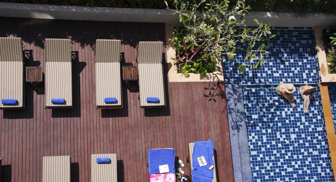 Бассейн в данном отеле находиться на 3 этаже и там же располагаются 6 номеров люкс с выходом в бассейн, если вы не попали в эту шестерку, сочувствую, в остальных номерах открывается шикарный вид на стройку или помойку.