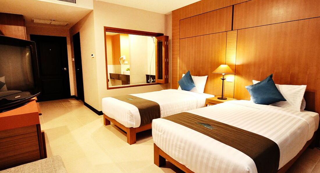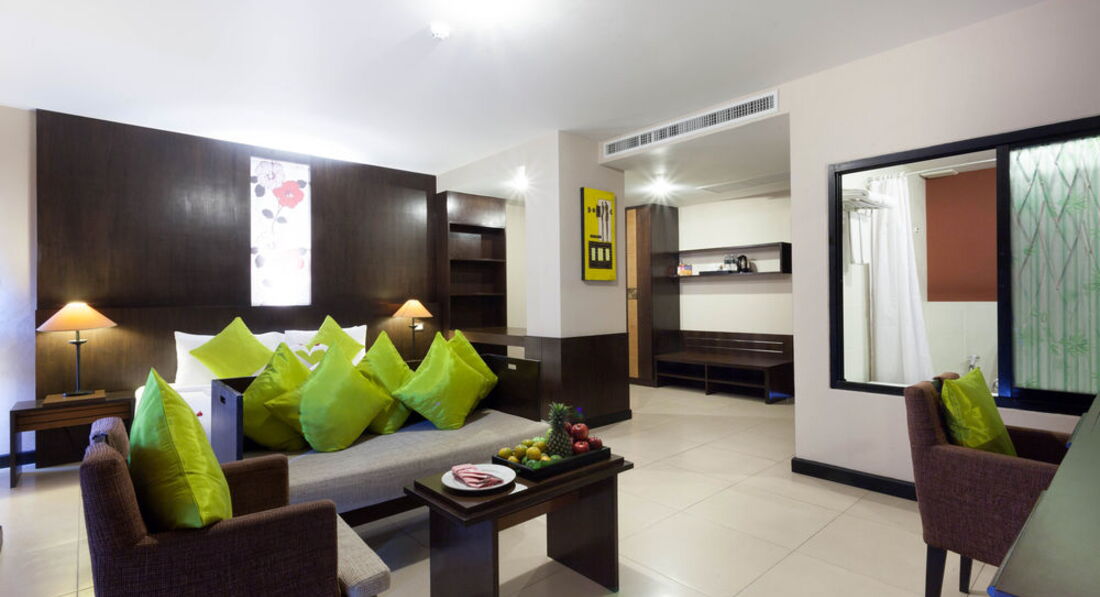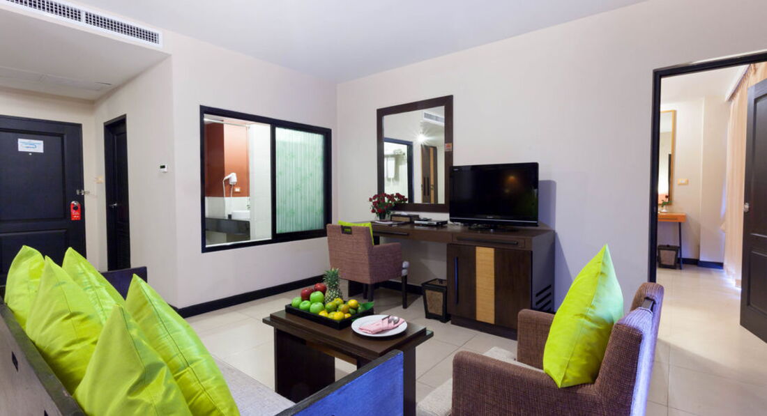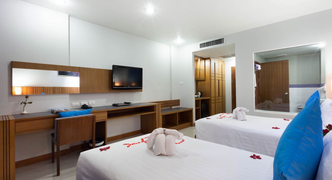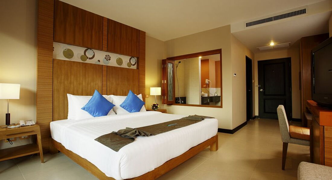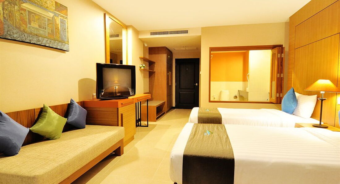 Отдыхали в январе, в целом отель понравился. Единственное пожалели, что не взяли де люкс, номер оказался с видом на стену кого-то (буквально 3 метра) непонятного строения, балкон очень меленький, но когда убрали один стул, то места стало побольше))) В номере очень удобная большая кровать, у ребёнка тоже дополнительная кровать была удобной и большой плюс , что кондиционер установлен так, что на кровать ребёнка не дул.Сначала номер сильно расстроил и мы хотели его поменять, но администратор сказал что нужно дождаться утра (заселились мы в 8 вечера) и утром решить вопрос с обменом, утром же нам сказали дождаться обеда (спустить весь багаж на ресепшен ) и отправляться на пляж) а после пляжа мы придём и якобы нам номер поменяют, но при этом сейф для документов и денег нам не предоставили , брать все ценные вещи с собой на пляж , либо тратить время на сбор и ожидание номера нам не хотелось, поэтому мы решили остаться в этом 205 номере. В общем к номеру мы привыкли и уже не обращали внимания не мелкие минусы (старенькое постельное бельё с дырочками, стена за окном, полотенца тоже старенькие хотя меняли каждый день!!!- это +. Пол не мыли, а подметали. Воду, кофе, чай приносили каждый день, но чем ближе к отъезду тем то пакетики чая и кофе не доложат, то бутылку воды)) Нона все эти маленькие минусы можно было закрыть глаза благодаря шикарным завтракам,мы в Тае 5 раз и поверьте есть с чем сравнить!!! Тут были и супы- минимум два вида каждое утро, очень вкусные , даже мой привередливый ребёнок ел с удовольствием, различные виды мяса (курица, говядина, свинина) и много разных гарниров.Овощи, фрукты (обычно арбузы, ананасы), соки, выпечка..в общем мы наедались и были очень довольны! Расположение отеля тоже очень удачное, до пляжа недалеко (туда мы ездили на шатле, а назад прогуливались обычно пешком), вечером ходили на продуктовый рынок он минут 5 от отеля, обедали в Джанглцейлоне. Отель советую, если вы конечно не привыкли к первой линии !